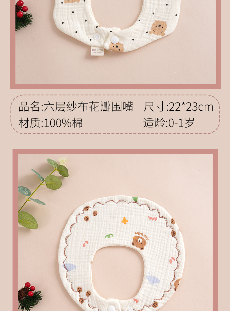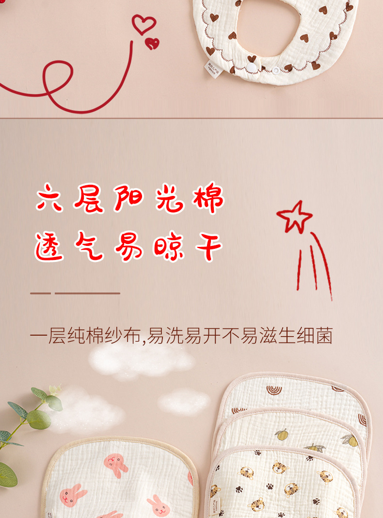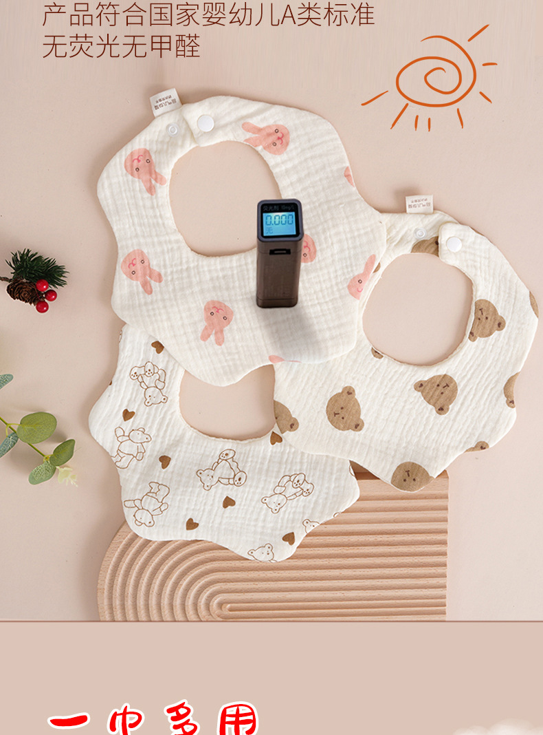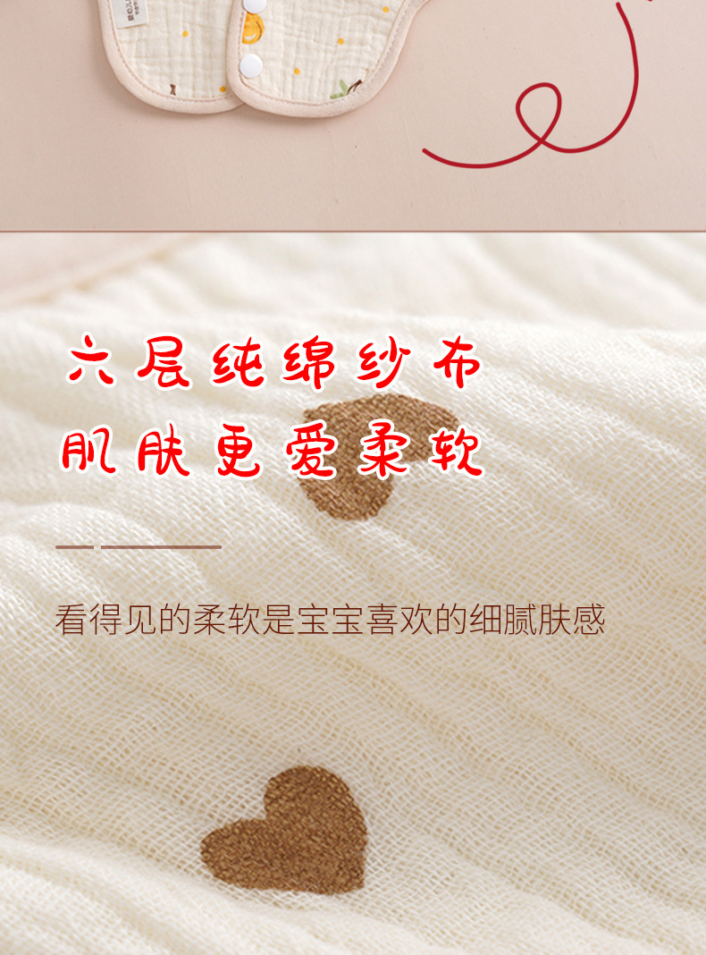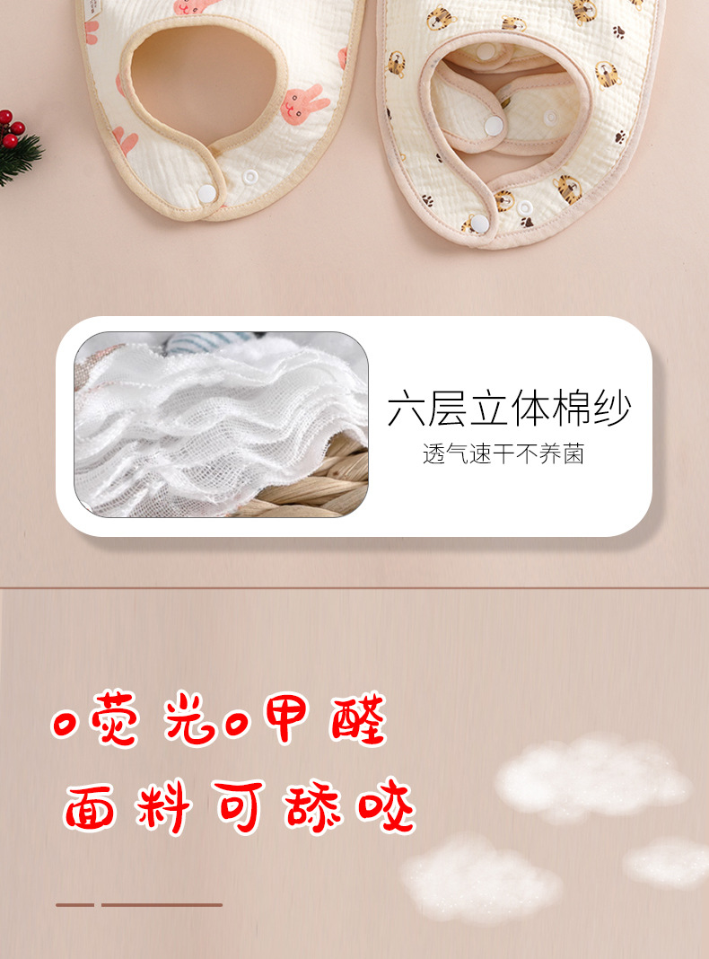 婴儿口水巾纯棉A类新生男女宝六层纱布防水围嘴围兜批发母婴用品