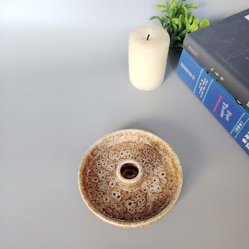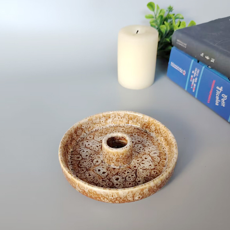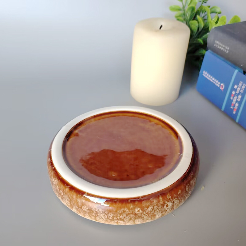简约陶瓷蜡烛盘创意窑变香薰蜡烛器皿酒店会所氛围烛台陶瓷装饰风