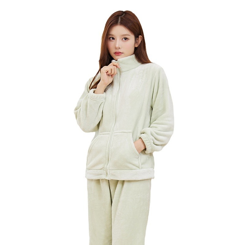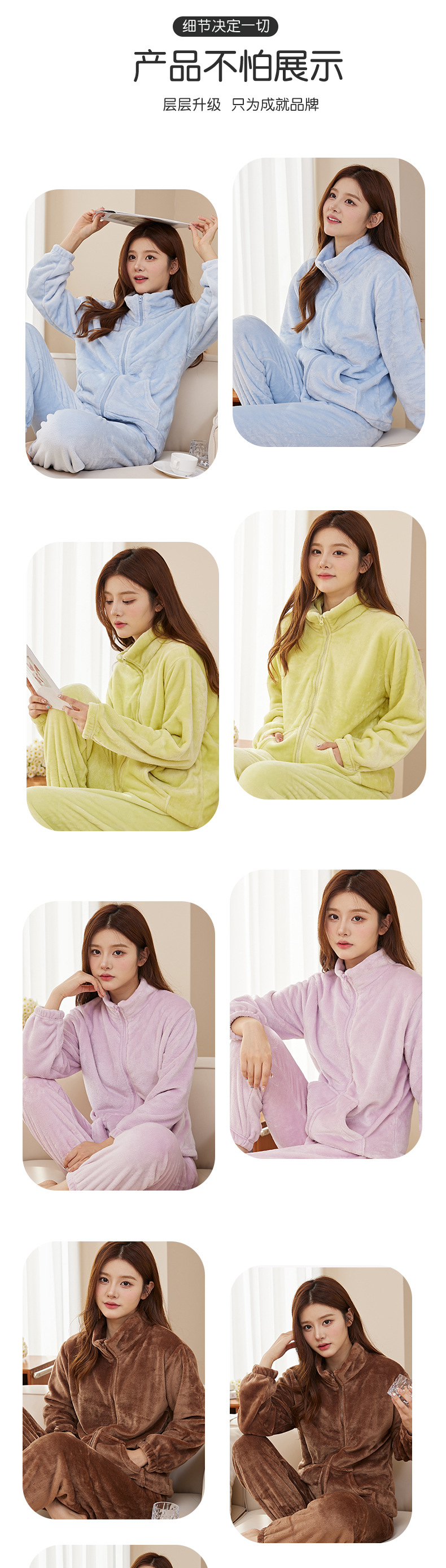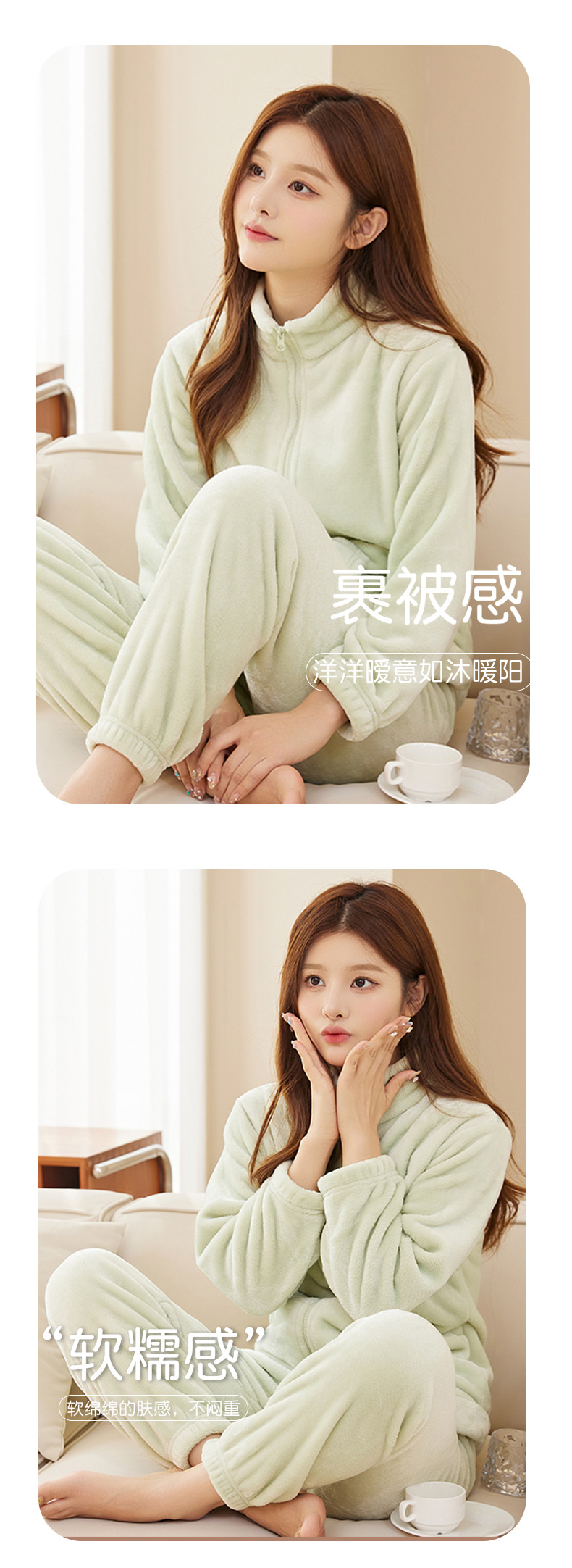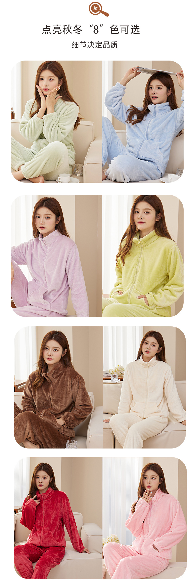 杜小宅同款睡衣秋冬季多巴胺ins风 法兰绒加厚拉链家居服女士套装