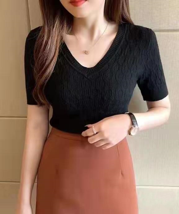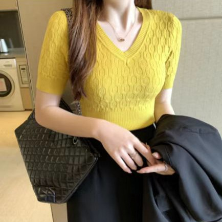 2024夏季v领毛衣女套头新款韩版修身内搭针织衫上衣短款打底衫潮
