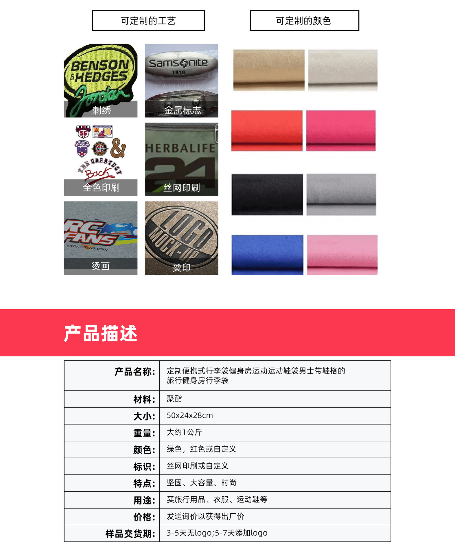 跨境旅行包牛津布健身包大容量行李袋防泼水独立鞋仓手提运动包包