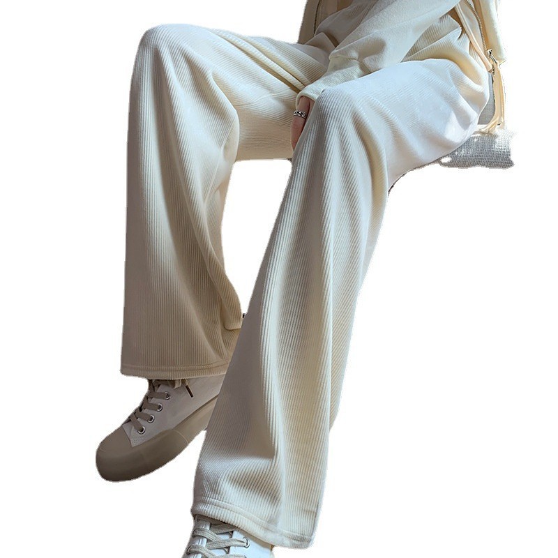 雪尼尔奶油阔腿神裤女加绒加厚保暖牛奶绒垂感拖地宽松直筒休闲裤