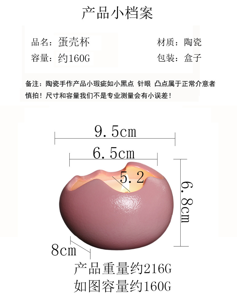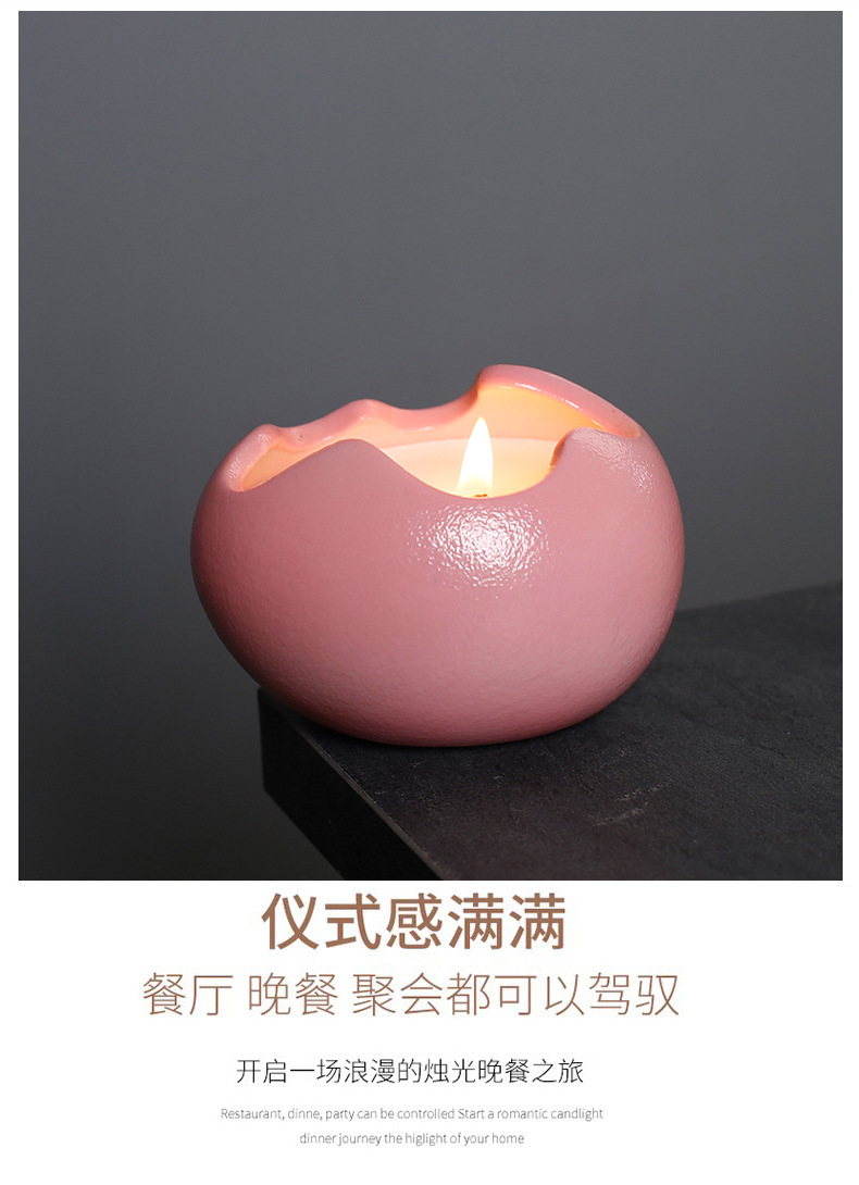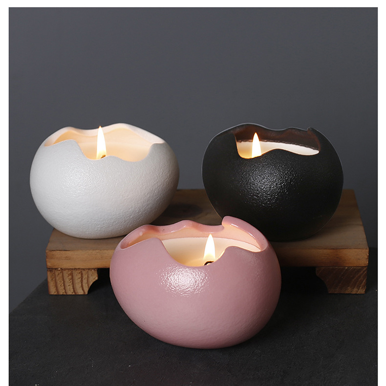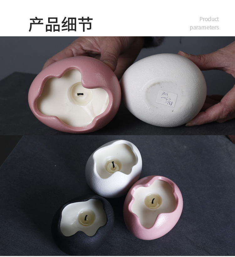 跨境创意蛋壳陶瓷蜡烛杯空杯高颜值香薰蜡烛器皿简约礼品烛台摆件
