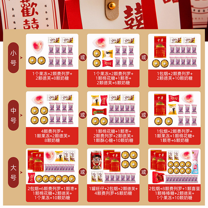 新款喜糖盒批发中式喜糖盒手提式伴手礼空盒喜糖盒子婚礼必备2023