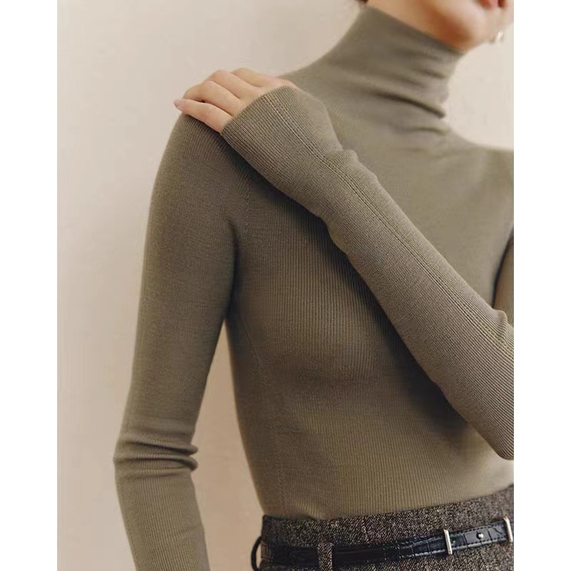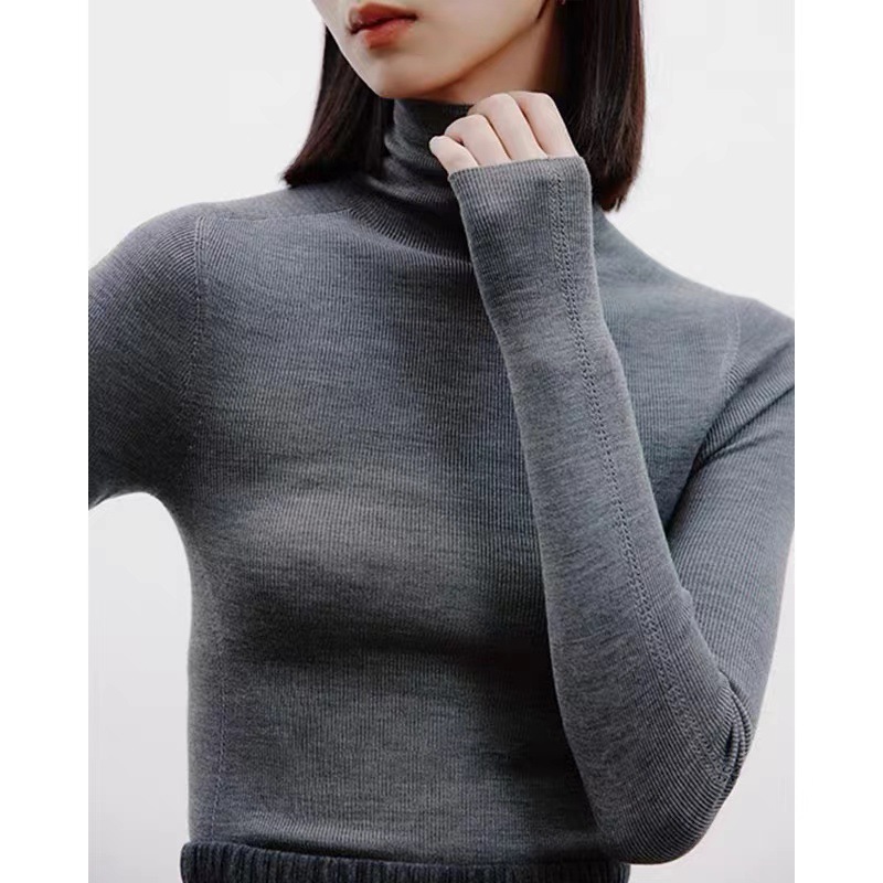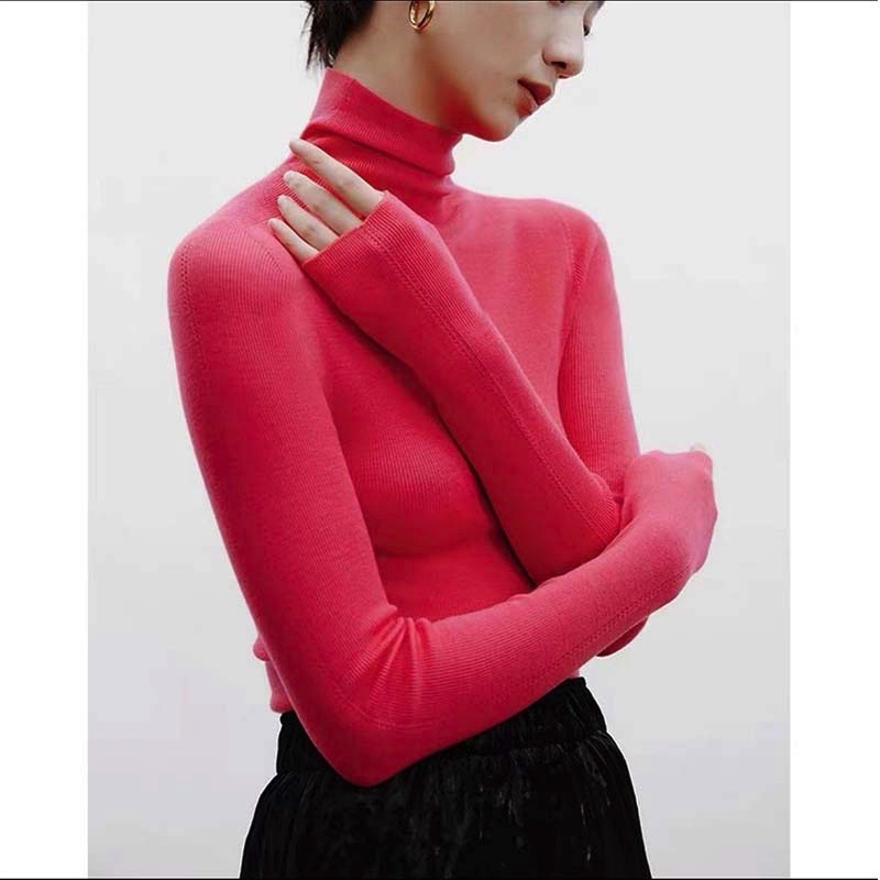 秋冬法式黑色堆堆领高领羊毛针织衫女洋气内搭打底毛衣高级感上衣