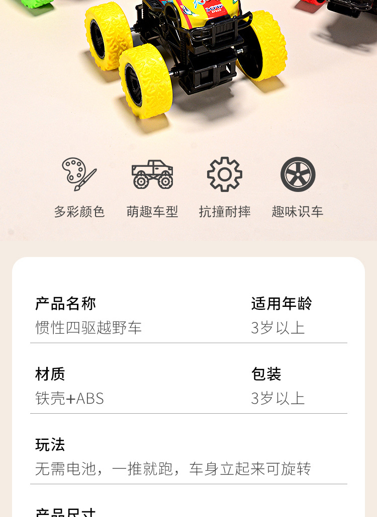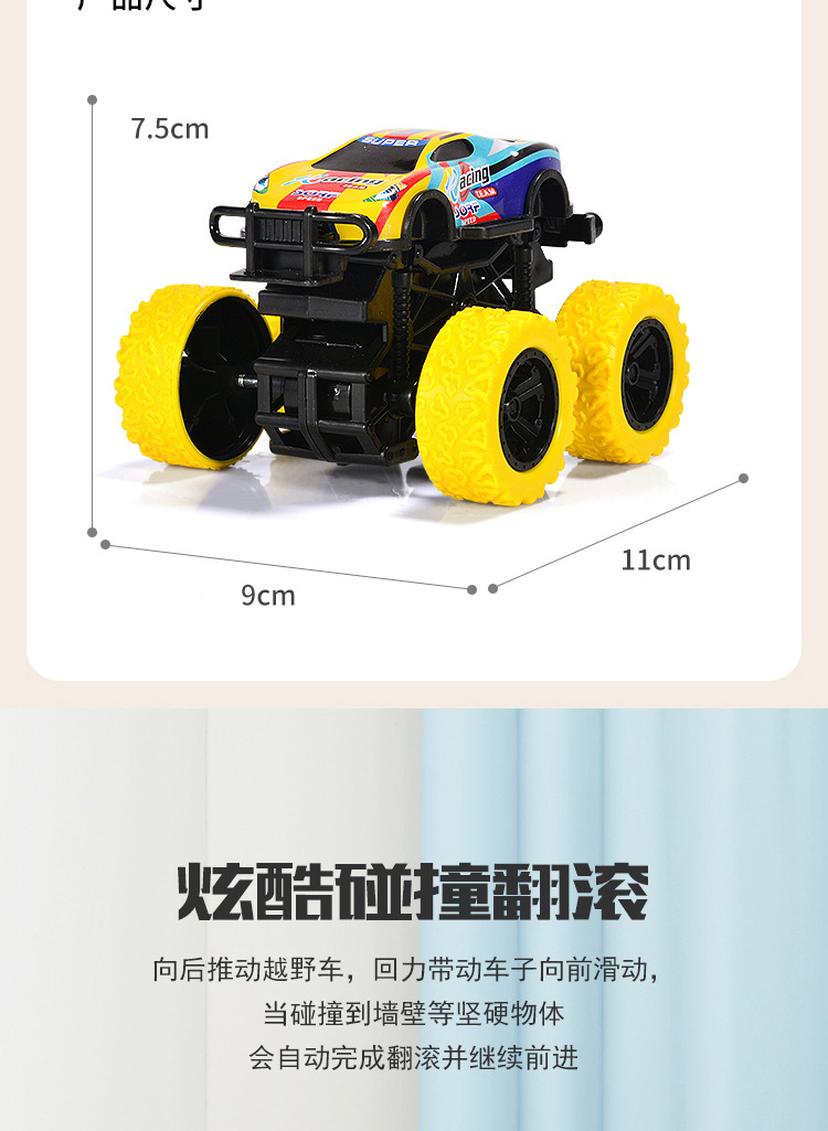 抖音直播铁皮合金车巨轮越野车特技车儿童玩具惯性玩具车耐摔爆款