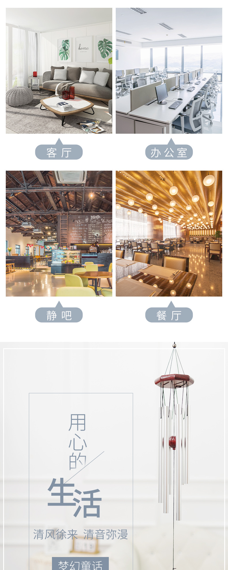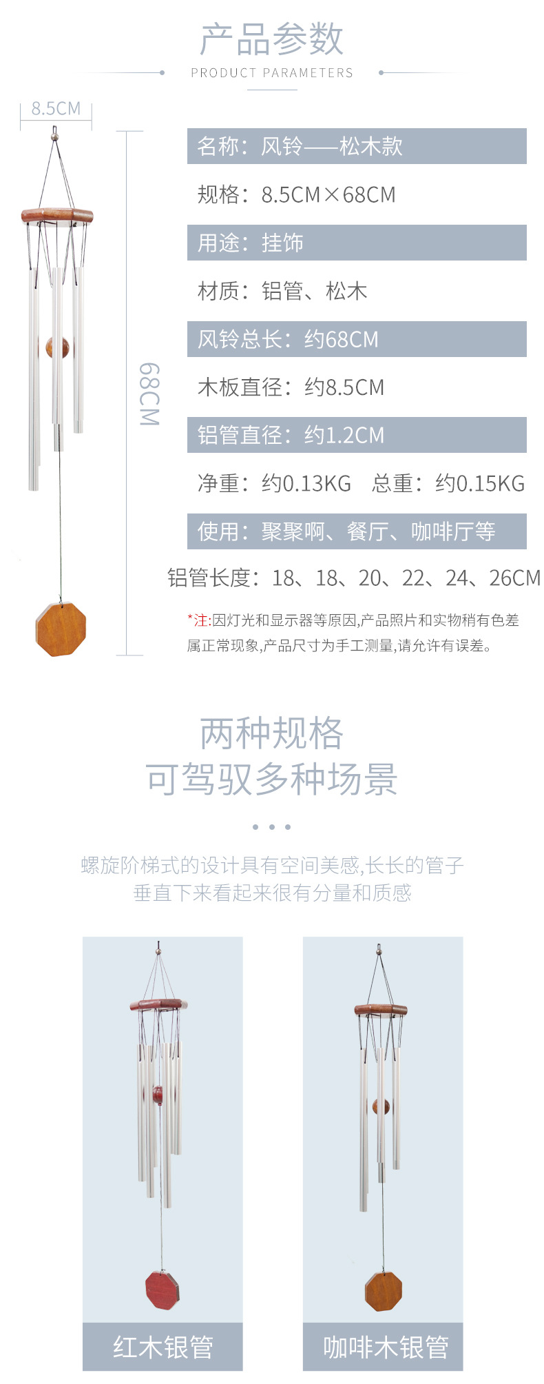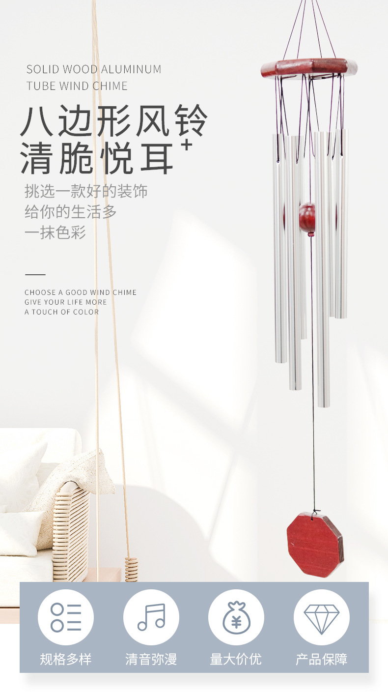 经典八边形实木金属铝管风铃家居装饰手工木质风铃挂饰工艺品挂件