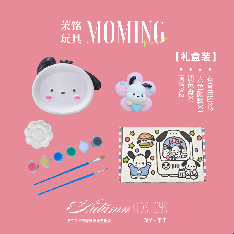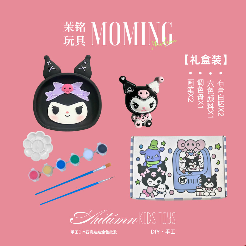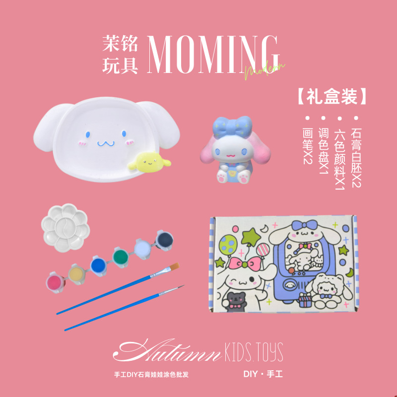 【网红款】手工DIY涂色石膏娃娃批发 三丽鸥圆盘彩绘夜市地摊玩具