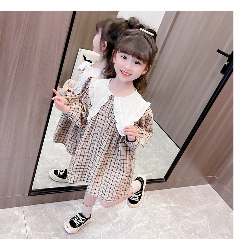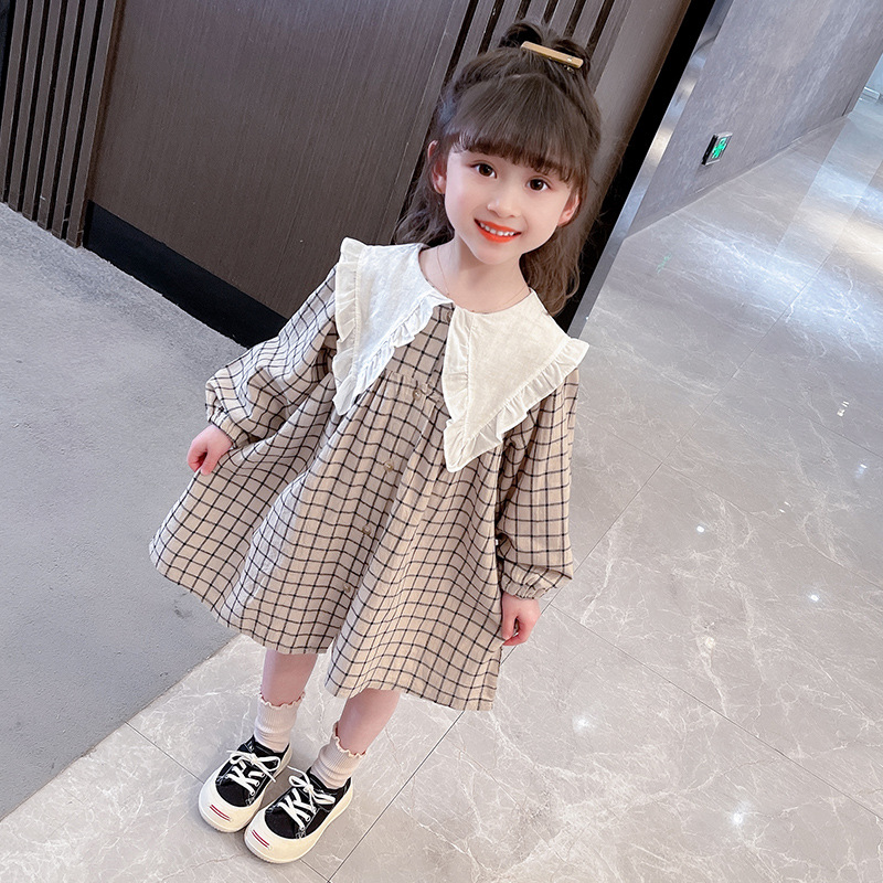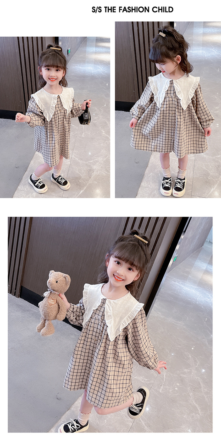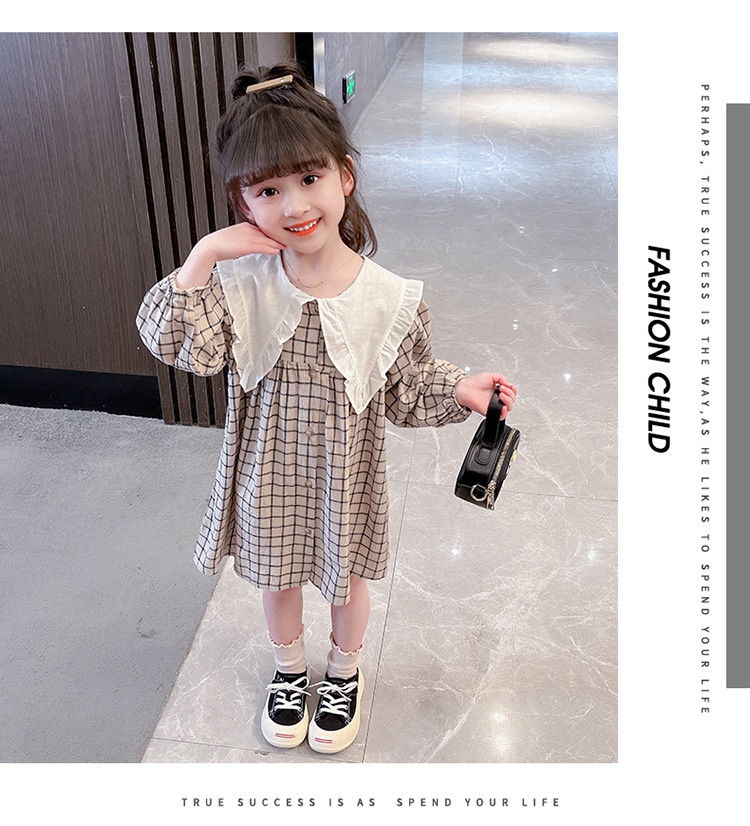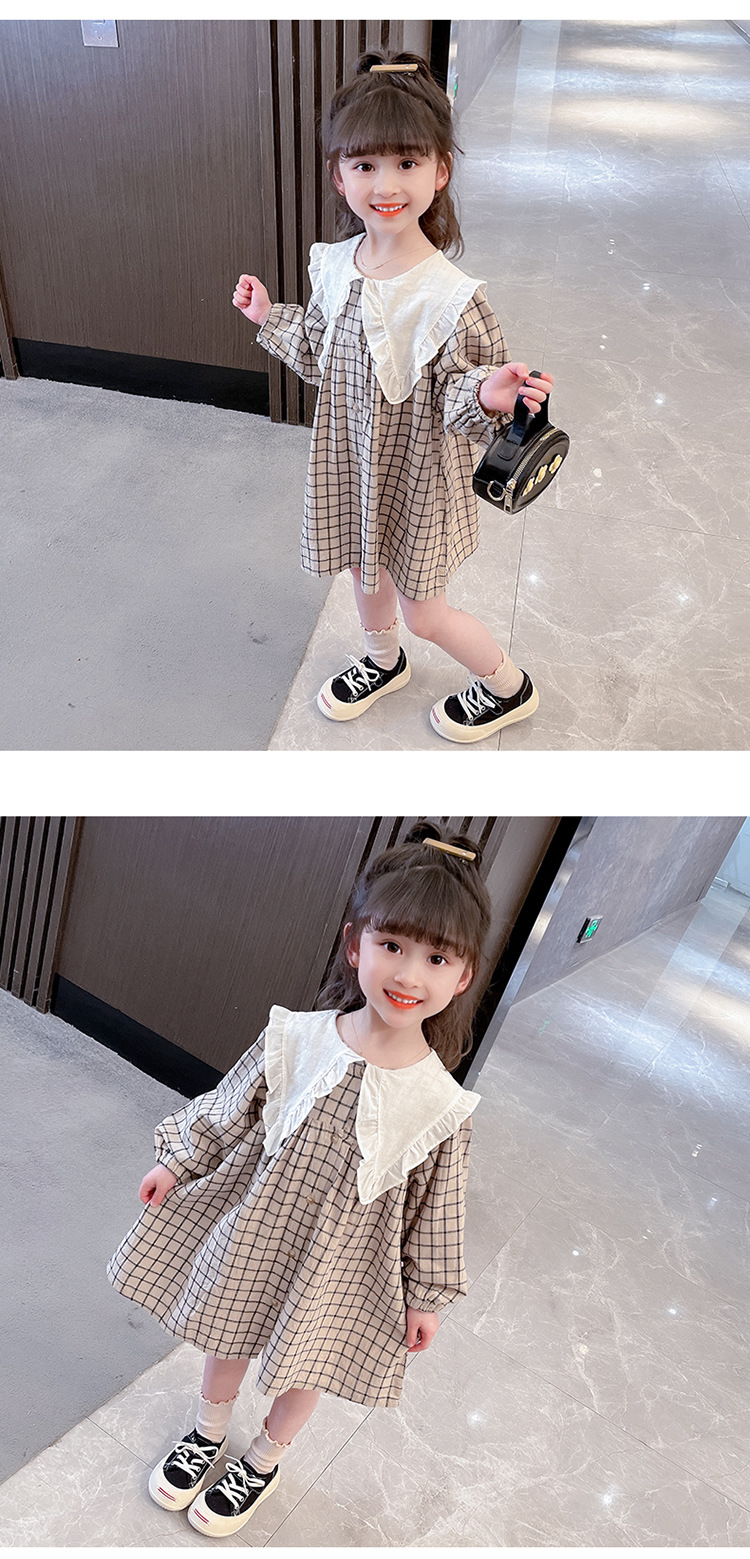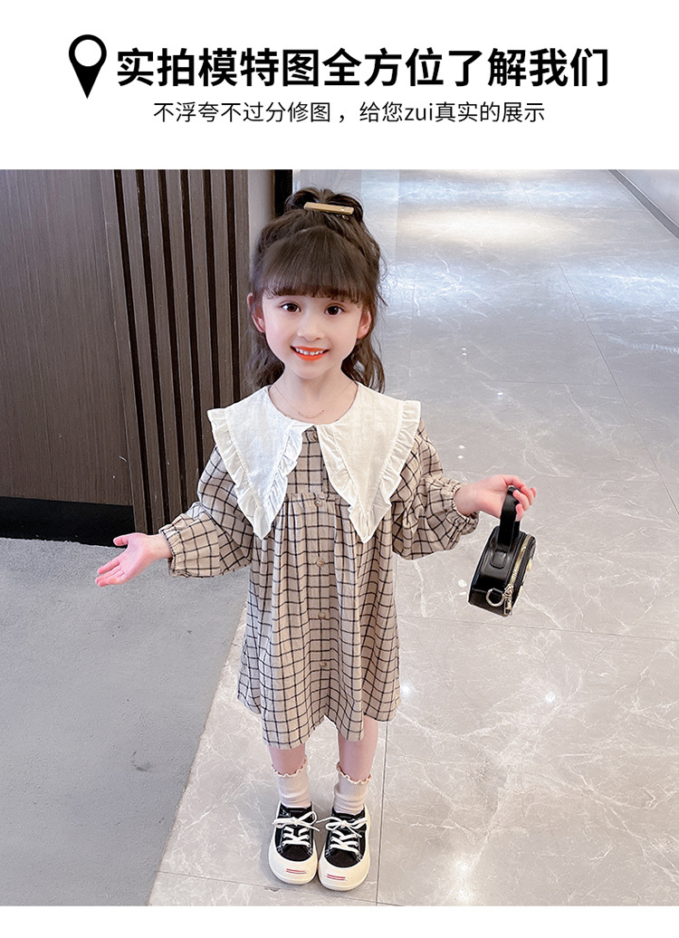 外贸女童连衣裙春秋2023新款格子裙韩国童装女宝宝公主裙棉麻裙子