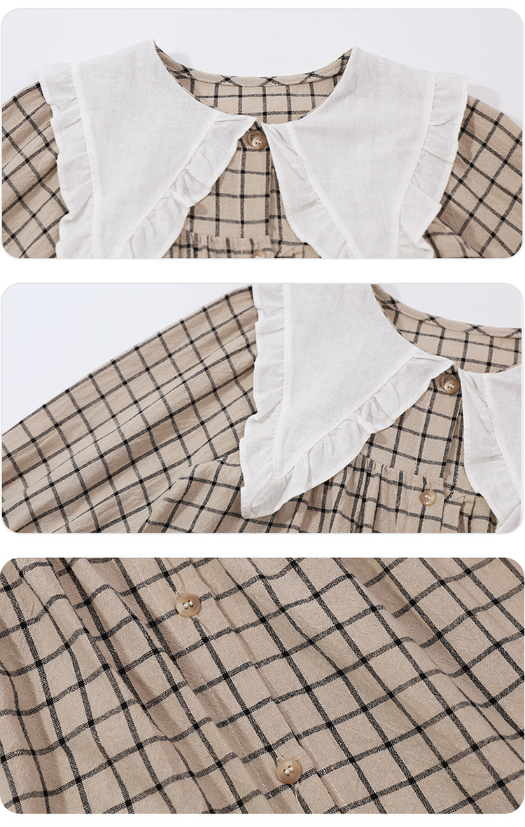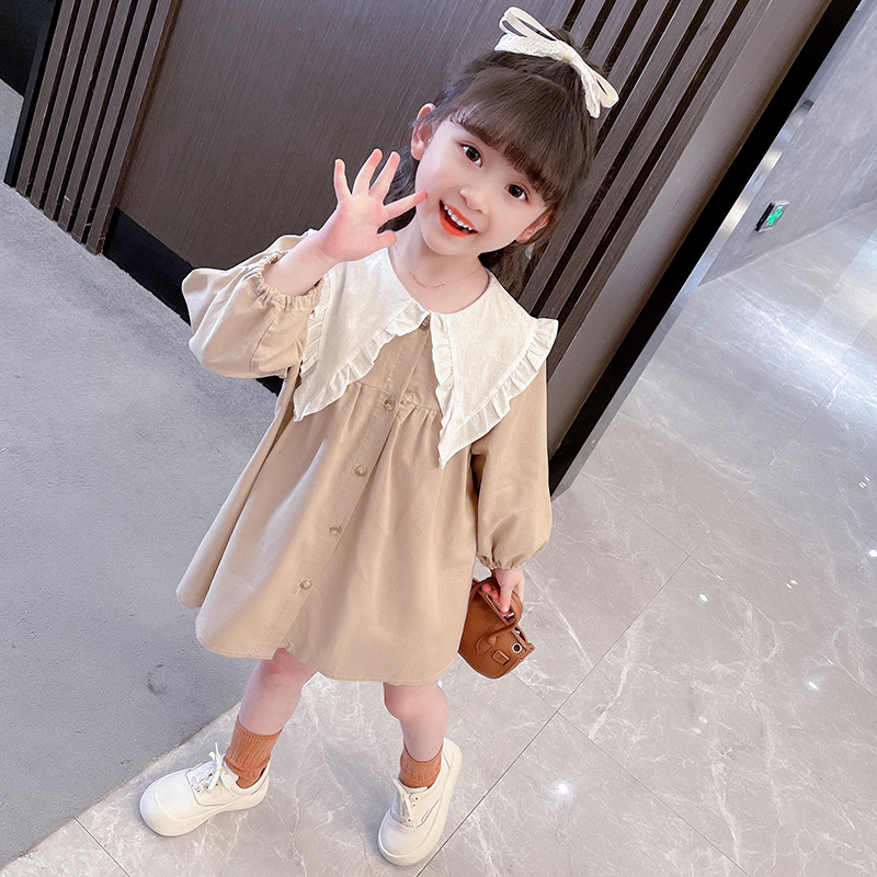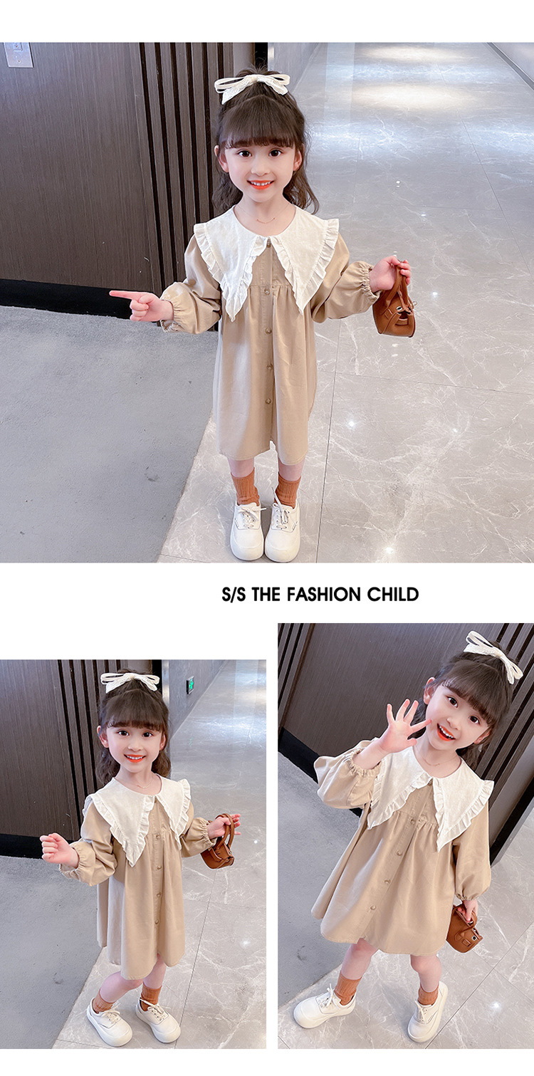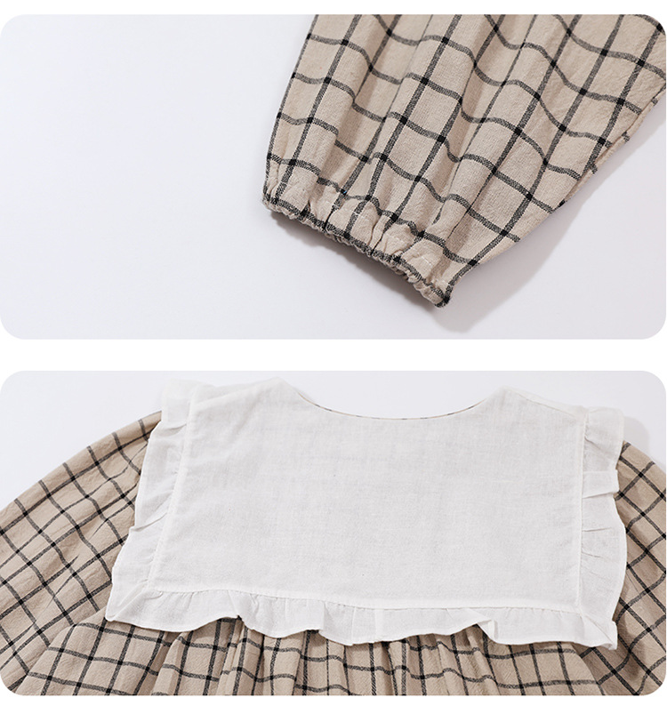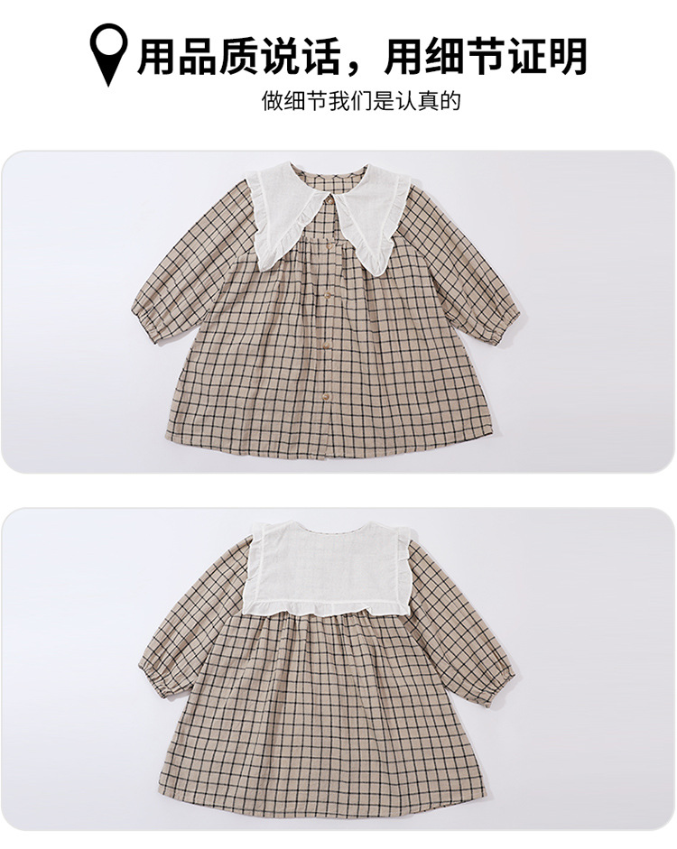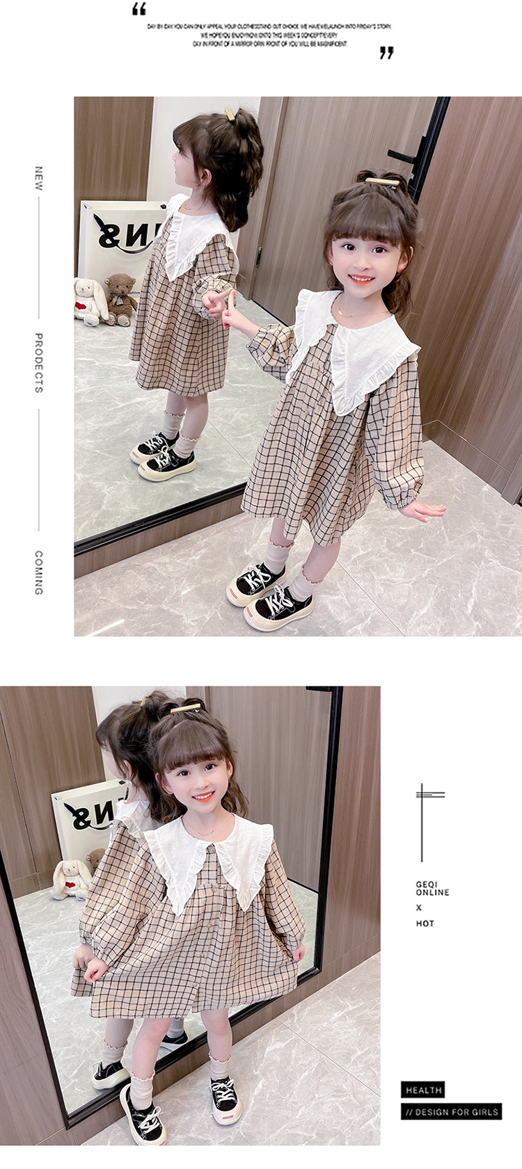 外贸女童连衣裙春秋2023新款格子裙韩国童装女宝宝公主裙棉麻裙子