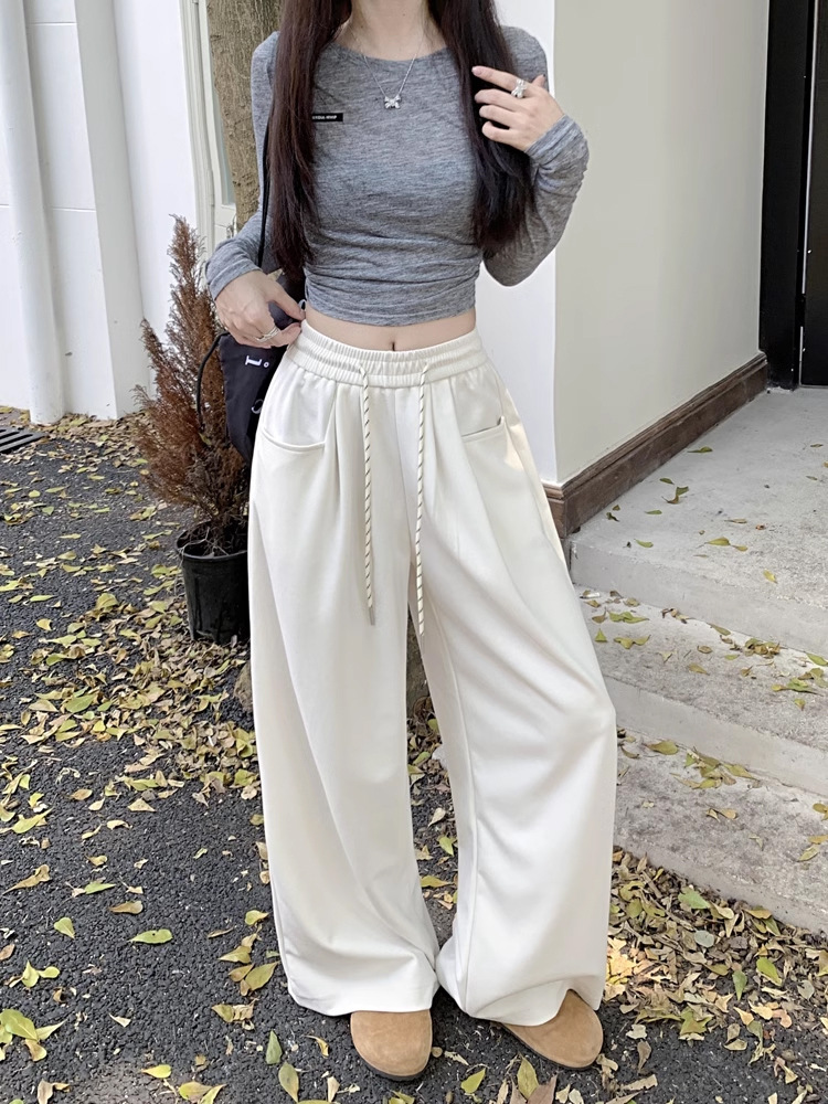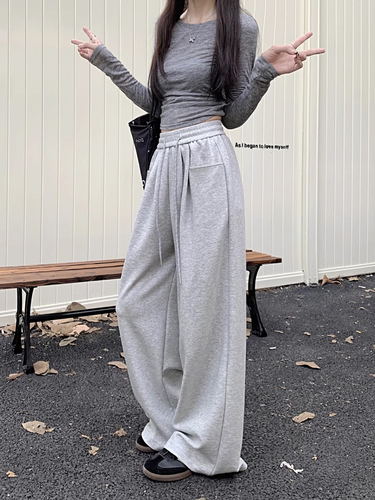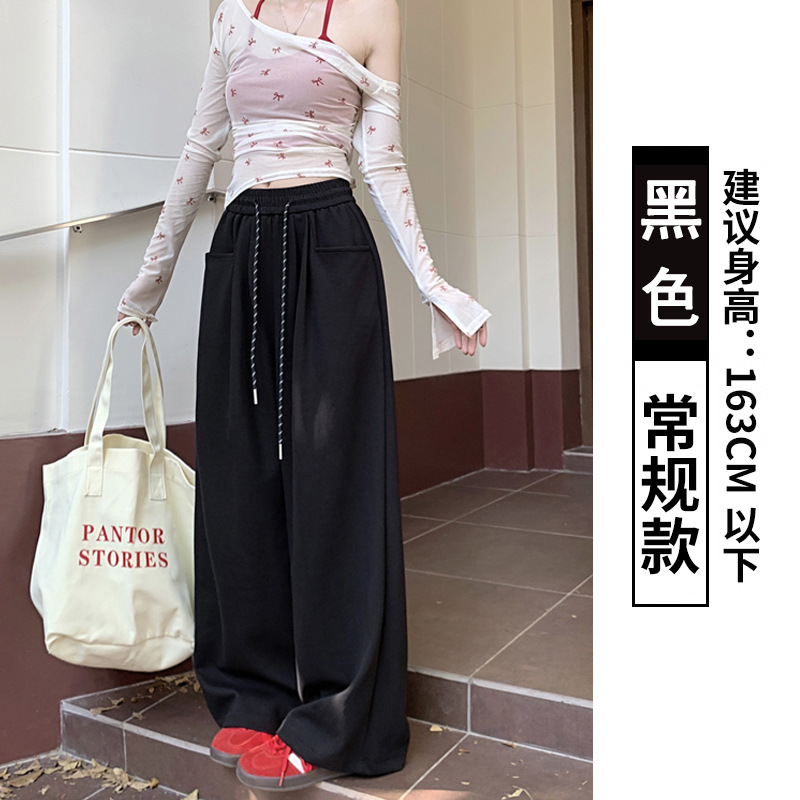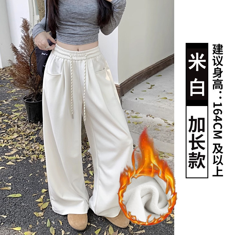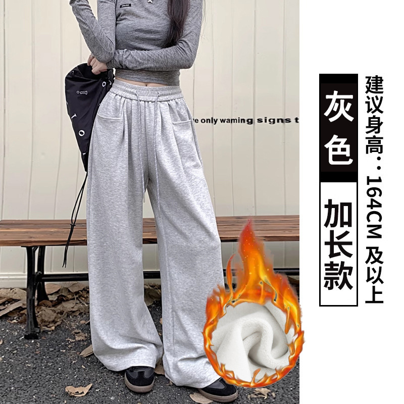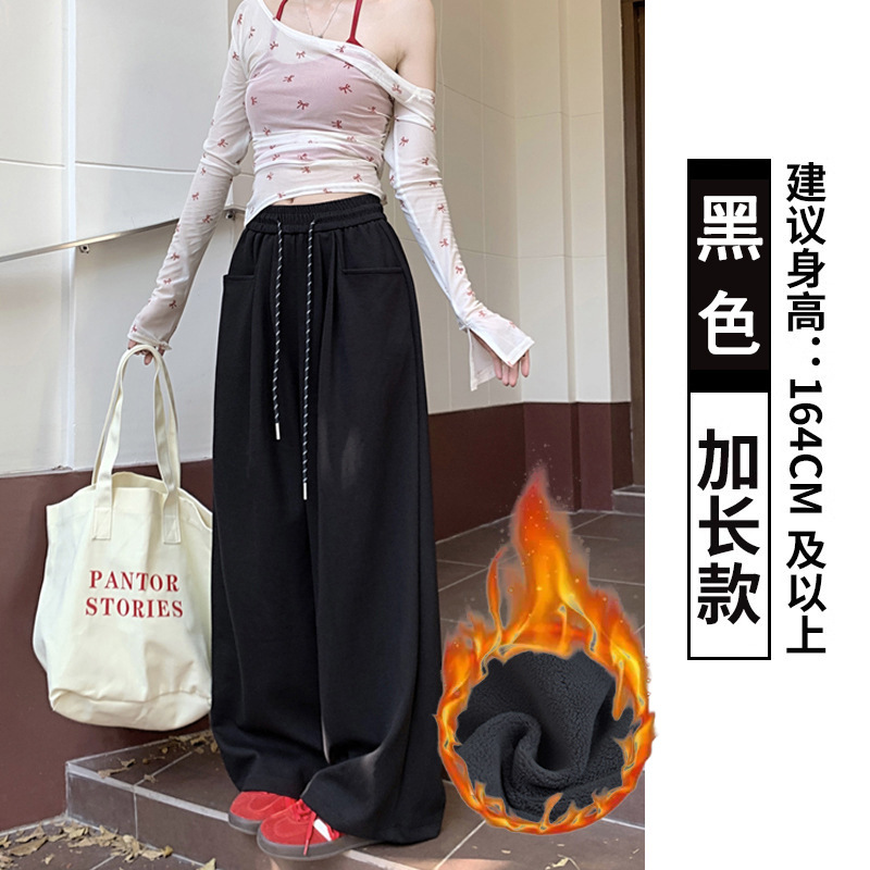 慵懒风阔腿裤女秋冬加绒2024新款高腰垂感直筒休闲拖地宽松卫裤子