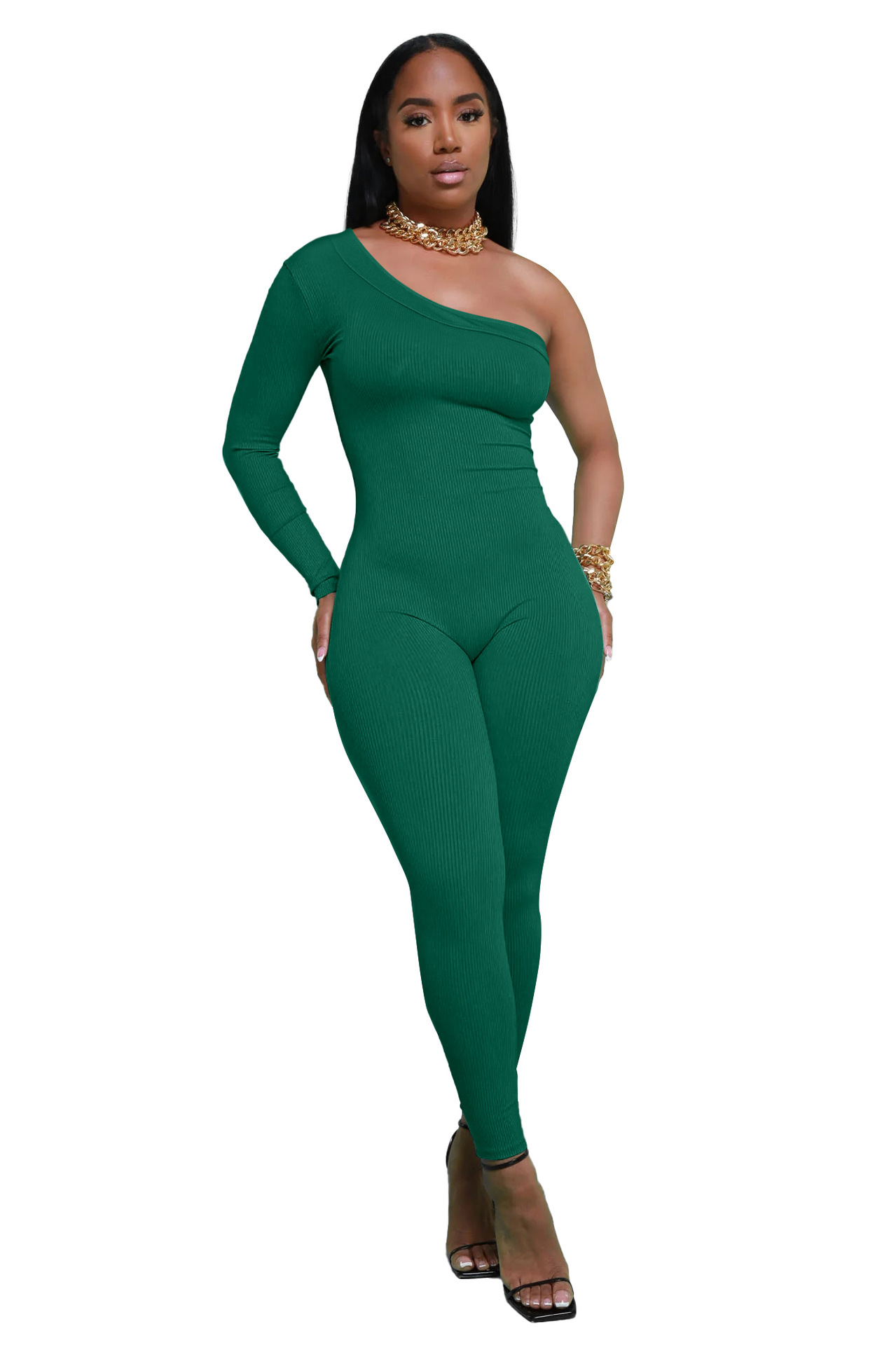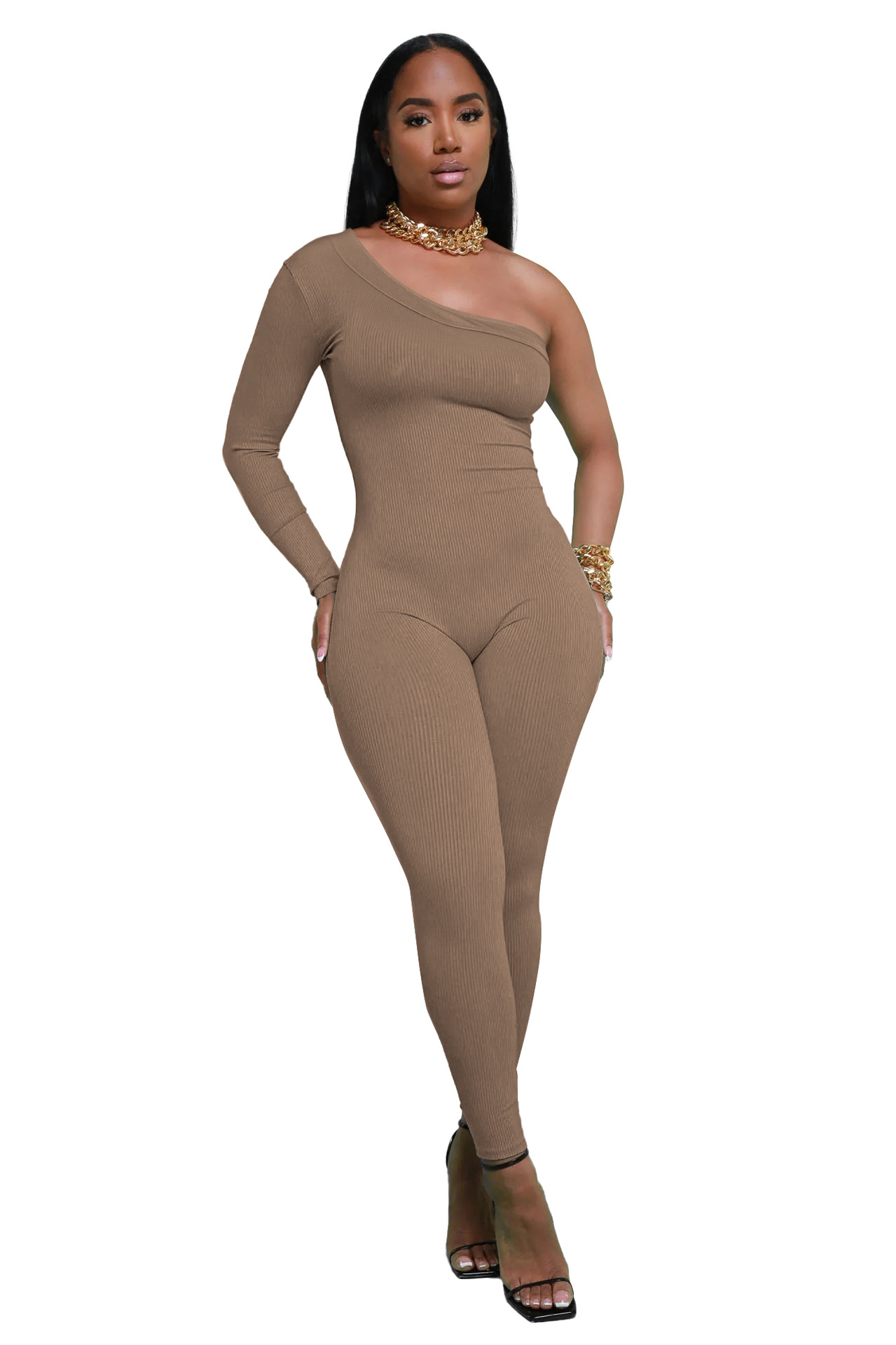潍美子2023秋季 亚马逊欧美跨境女装 斜肩修身 舒适透气连体裤女