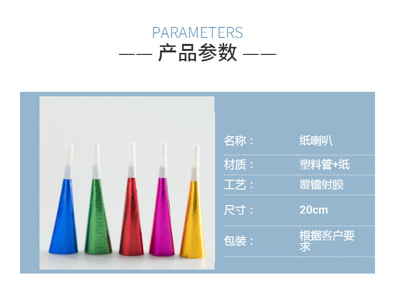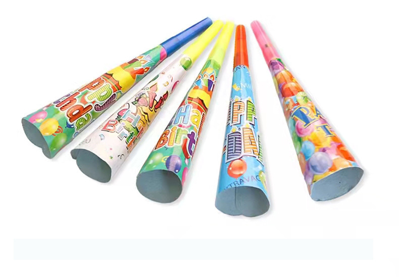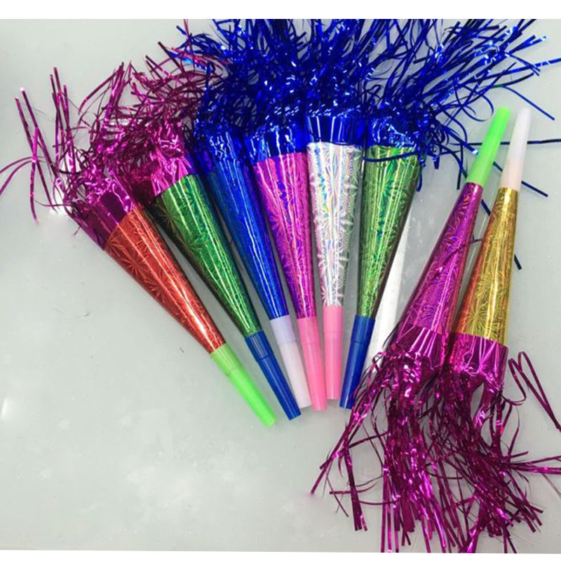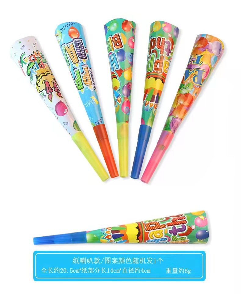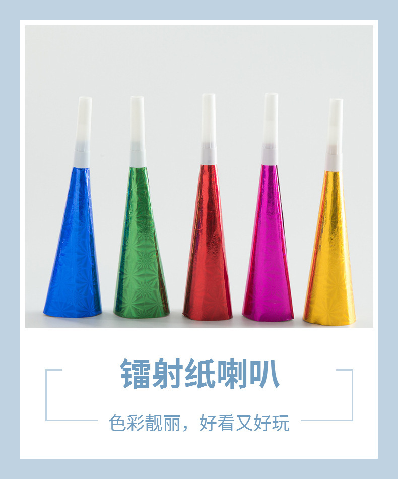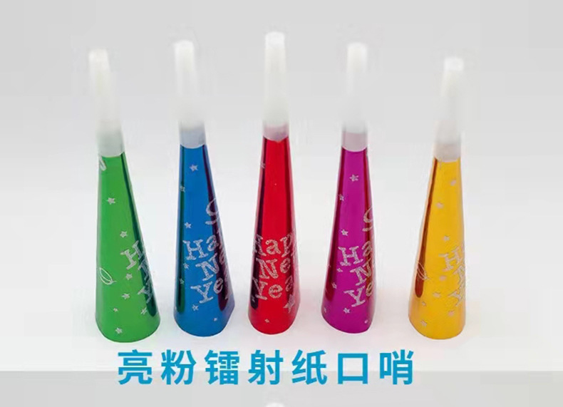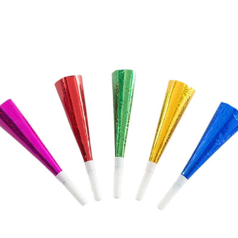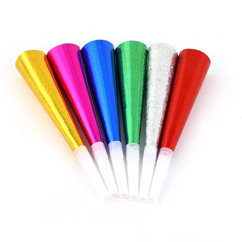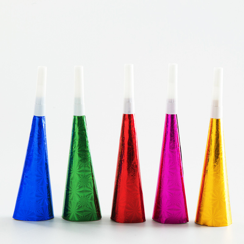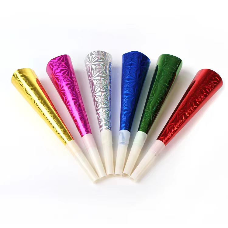 跨境热卖镭射纸大喇叭吹龙口哨儿童生日派对玩具助威道具厂家批发
