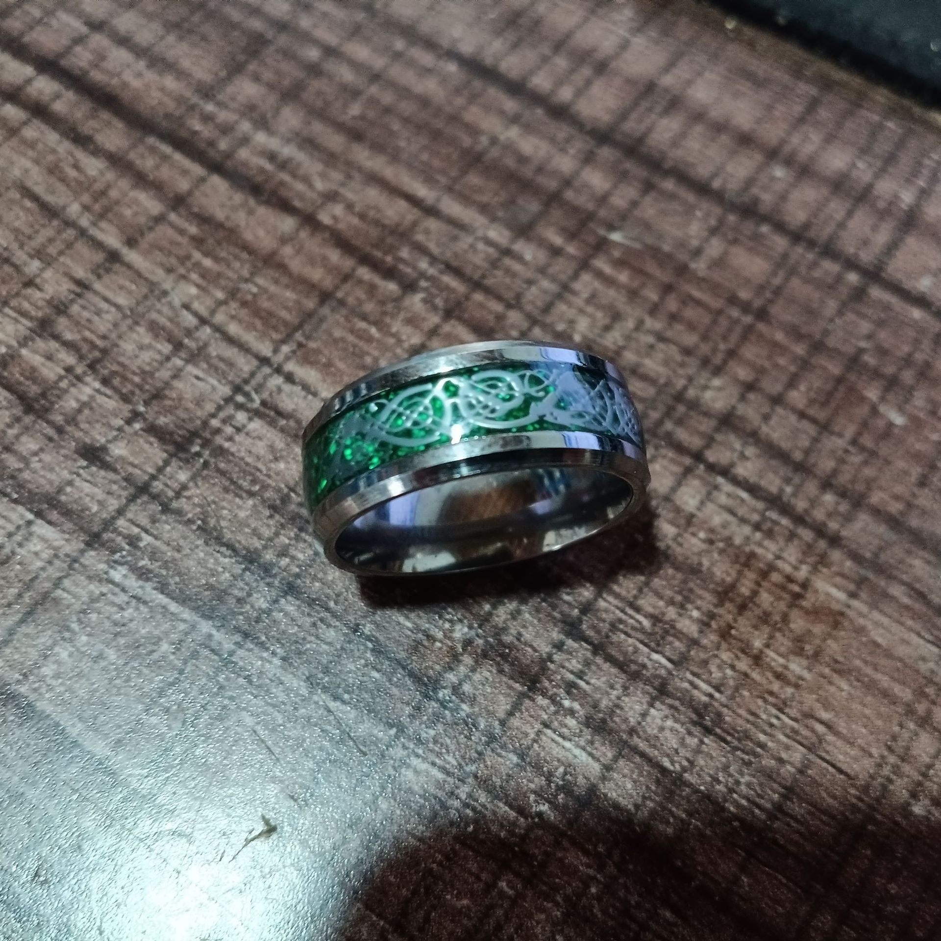 跨境货源 个性时尚龙纹钛钢戒指 镶龙纹片男女款不锈钢指环饰品