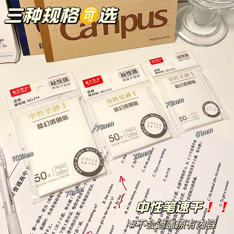 磨砂透明PET便利贴学生用便签贴纸便签本日系可粘贴n次贴工厂直销