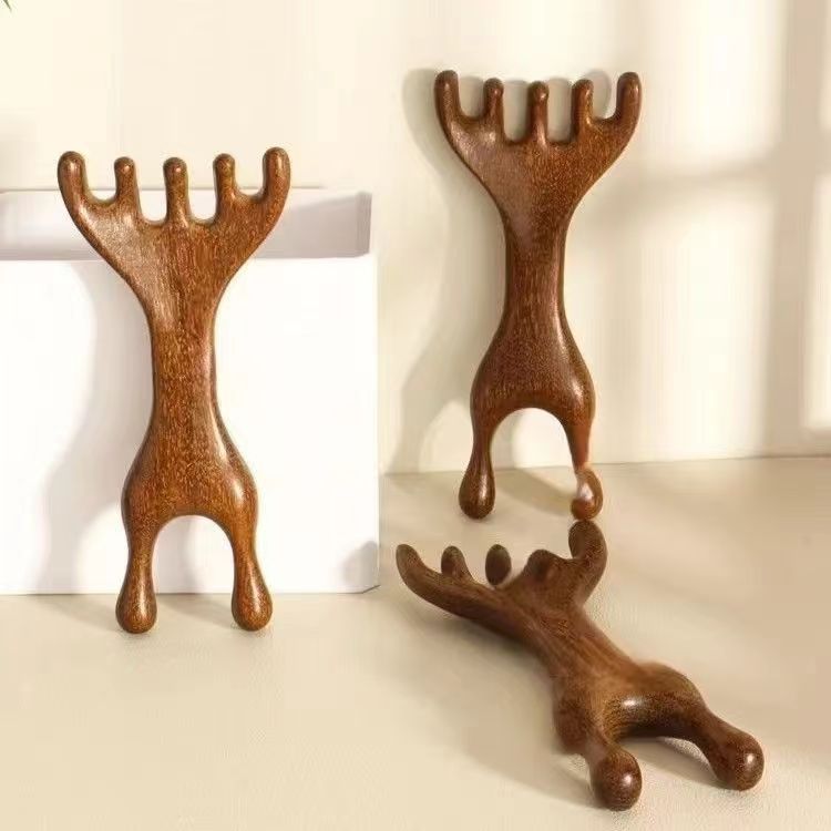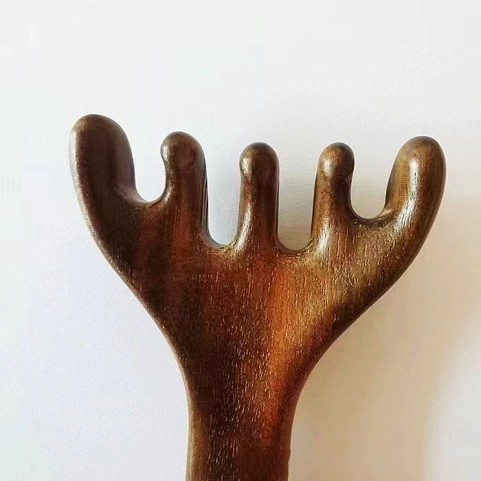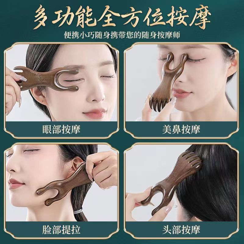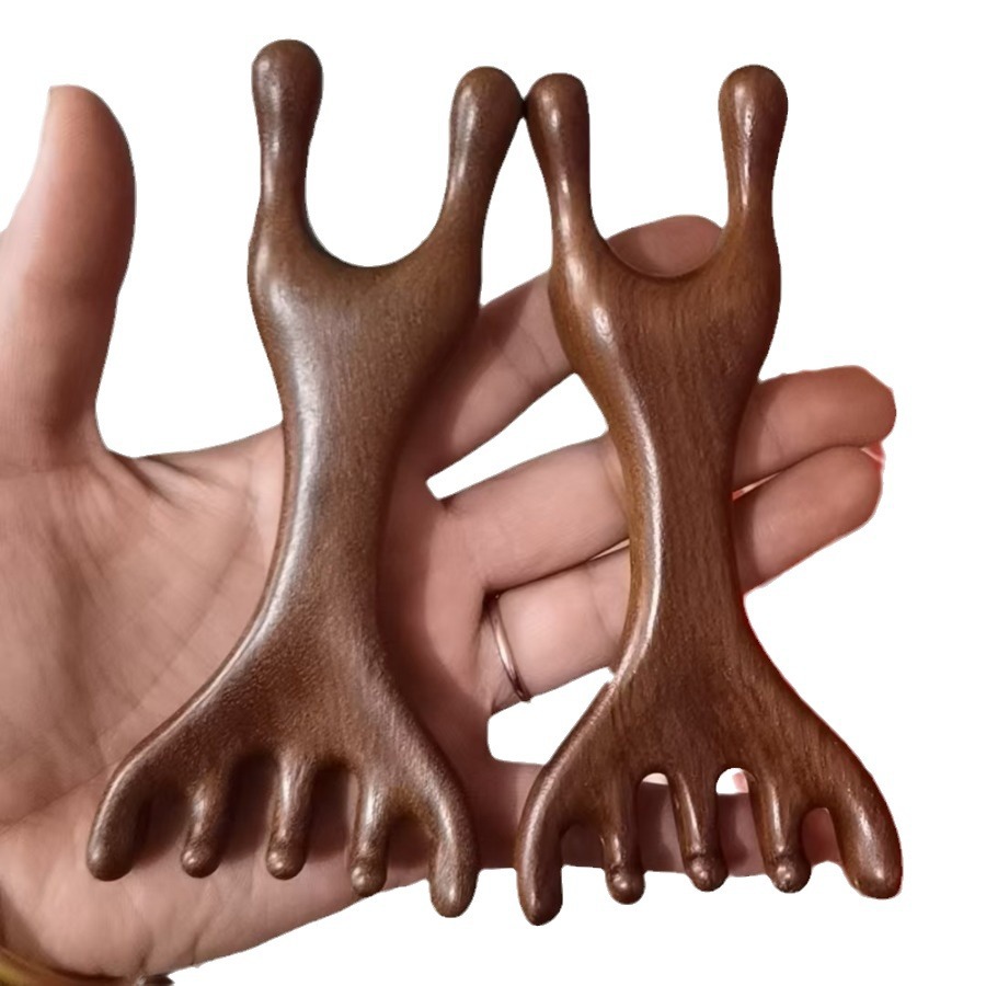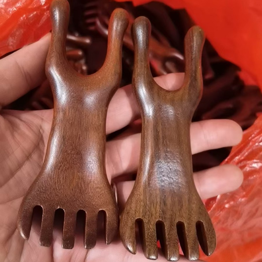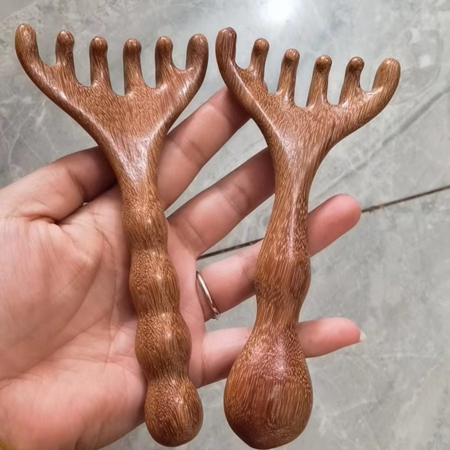 头部按摩器檀木五齿头疗工具头皮五爪梳子抓挠头刮痧经络梳多功能