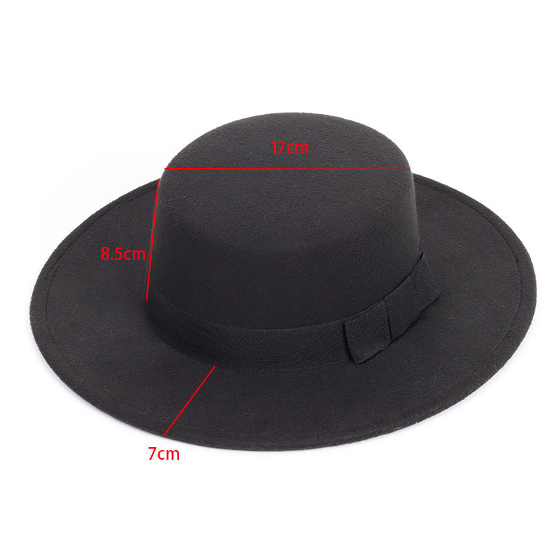 跨境货源纯色毛毡帽英伦复古爵士帽男女平檐绅士帽亚马逊平顶礼帽