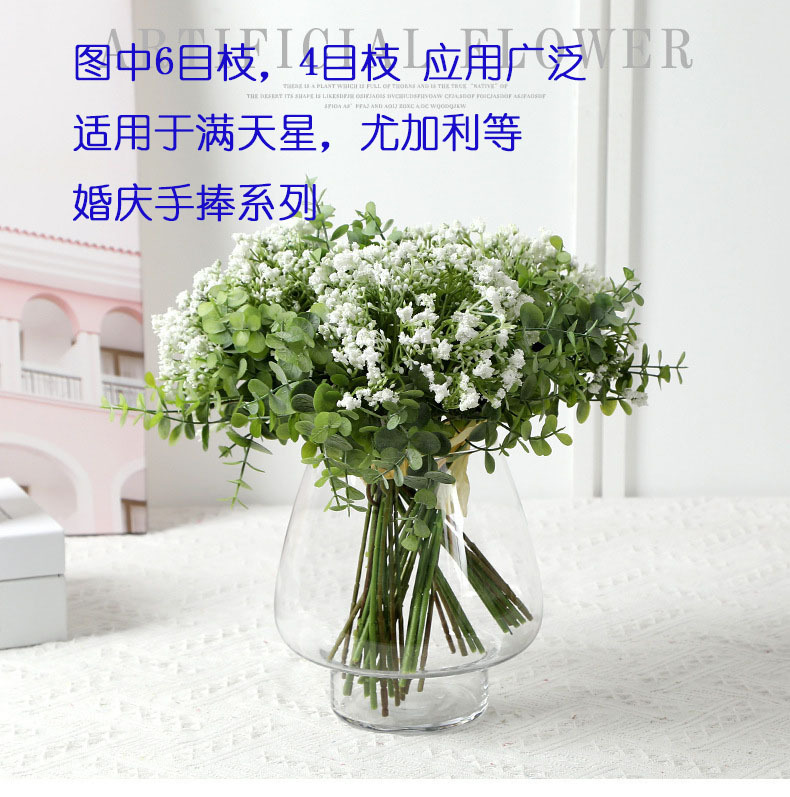 跨境人造花手捧花满天星6目枝装饰家居摆件婚礼厂家直销花杆铁丝