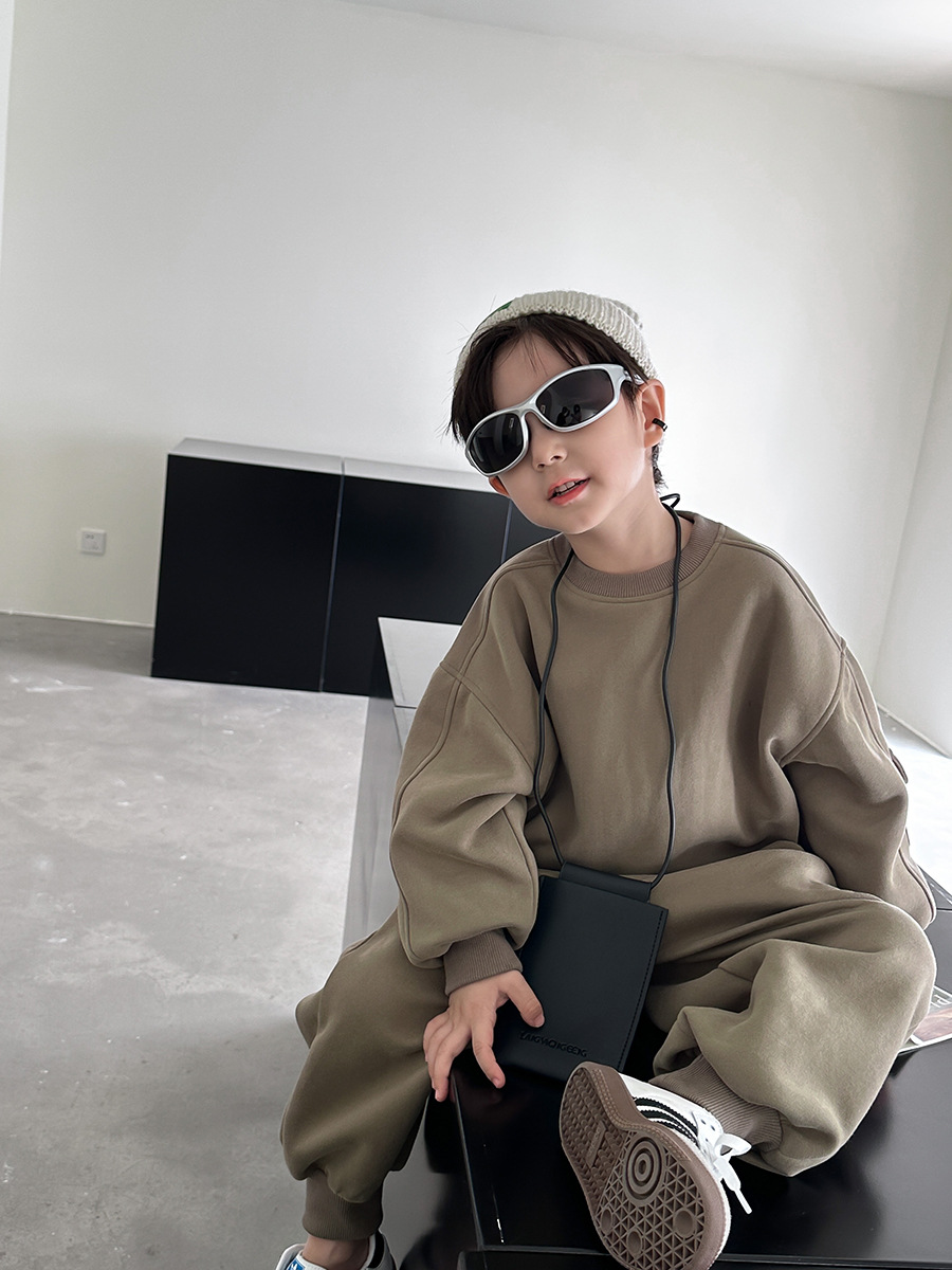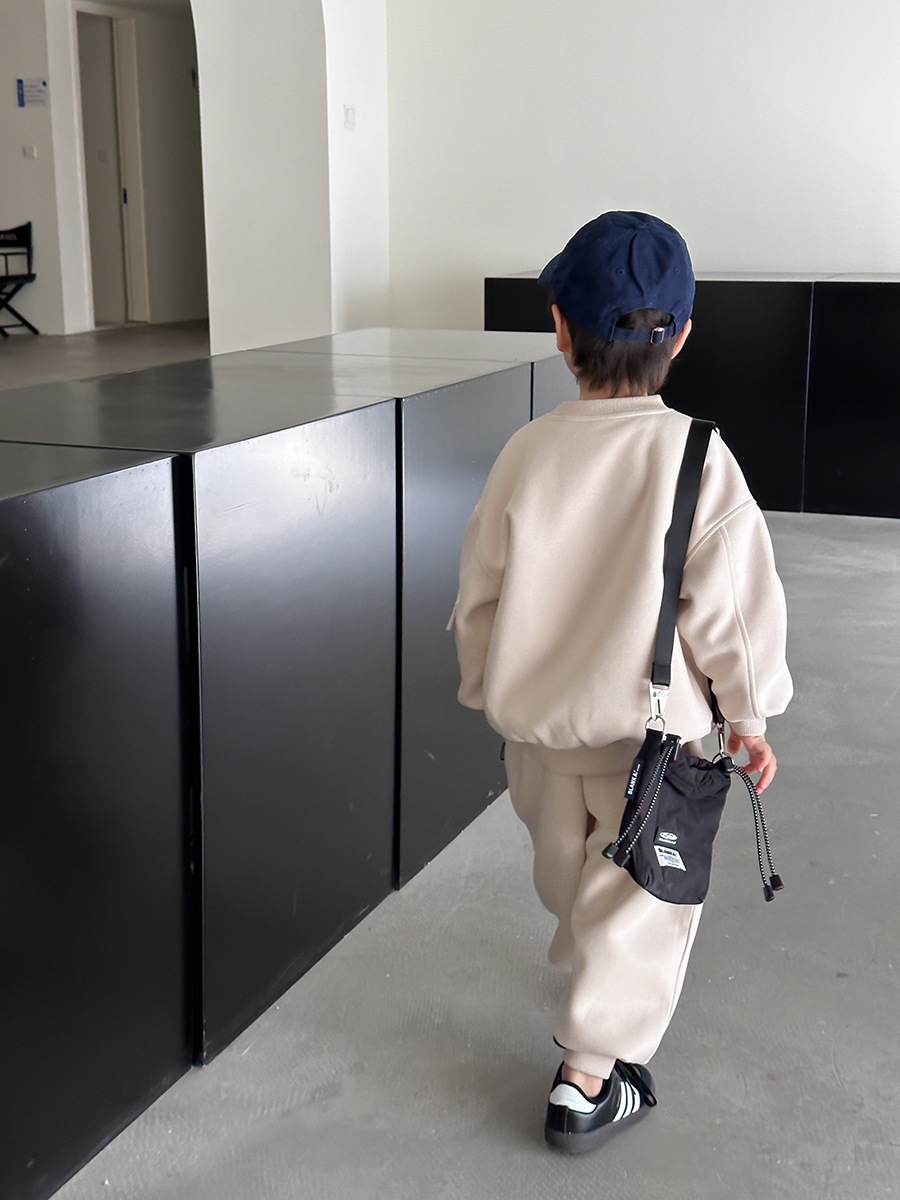 艾摩贝贝儿童2024秋帅气运动套装男女童宝宝复合棉贴标口袋两件套