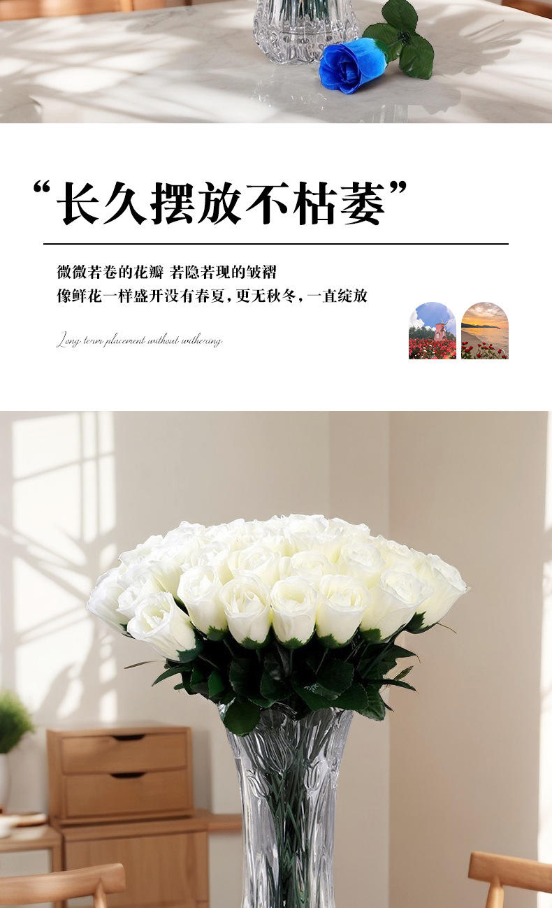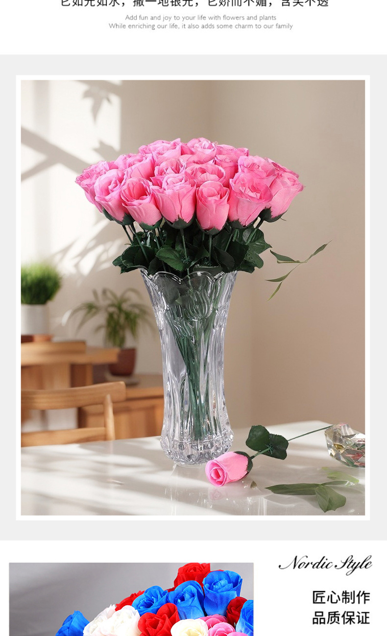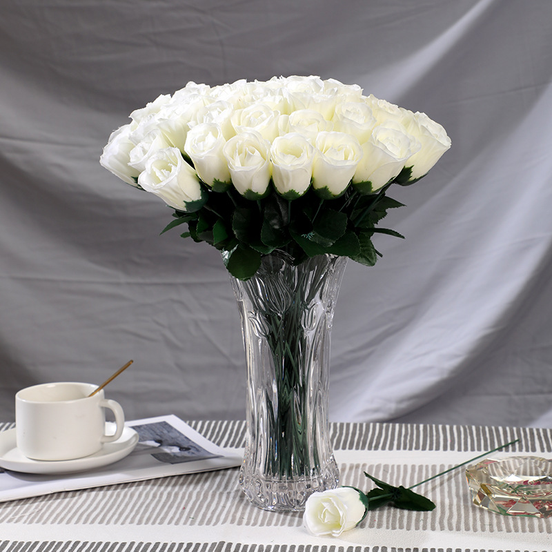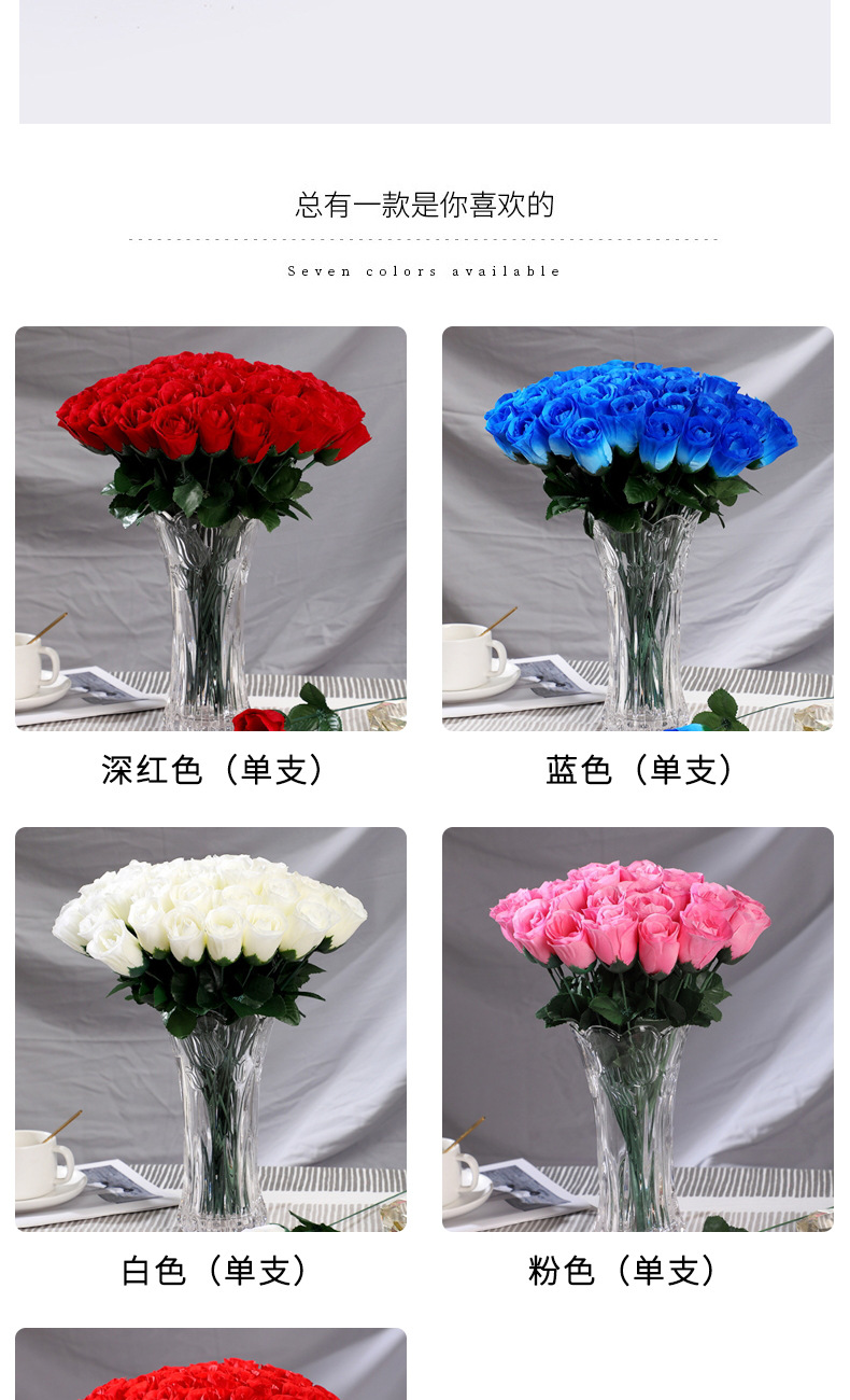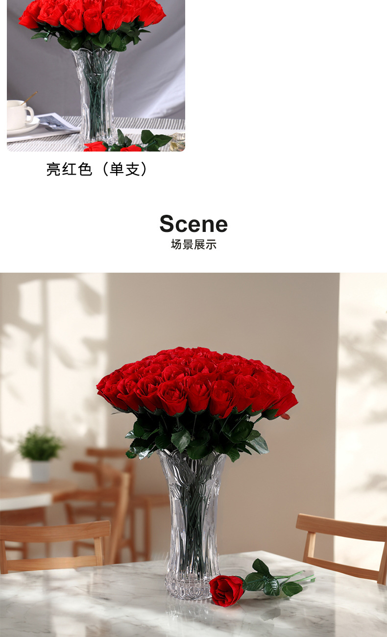 家居摆放单支仿真玫瑰花 婚礼堂插花背景假花 仿真花束绢花假花