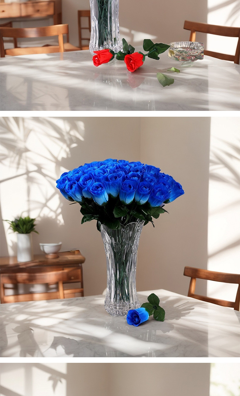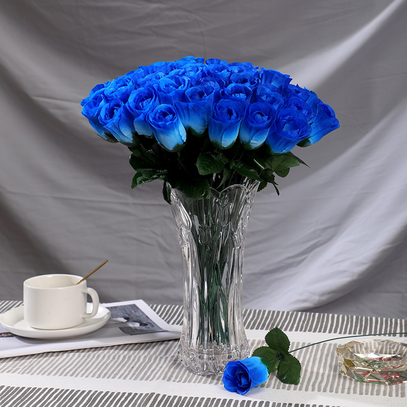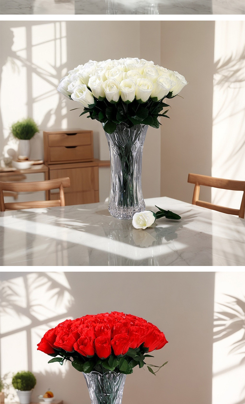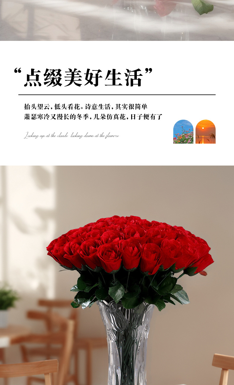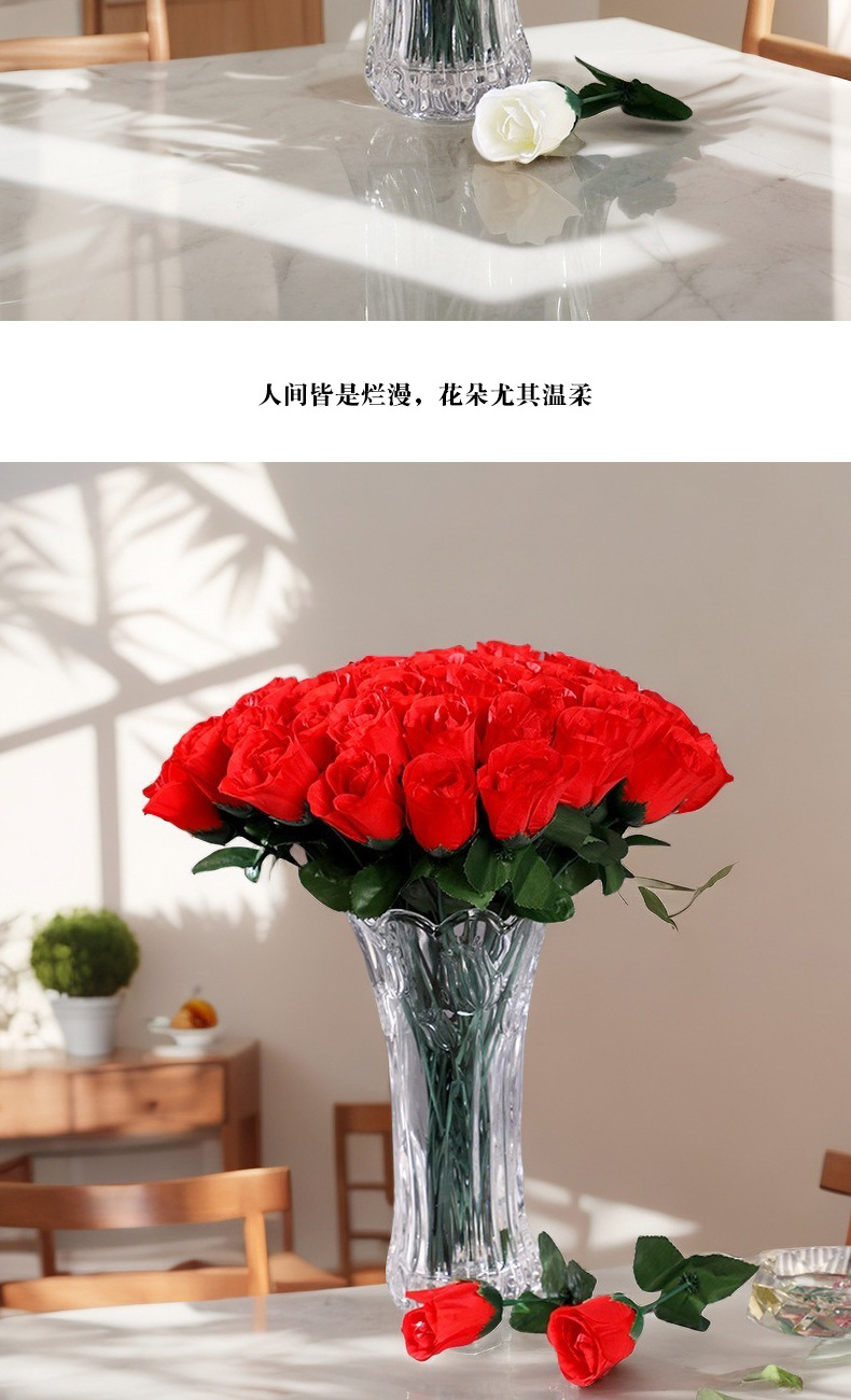 家居摆放单支仿真玫瑰花 婚礼堂插花背景假花 仿真花束绢花假花