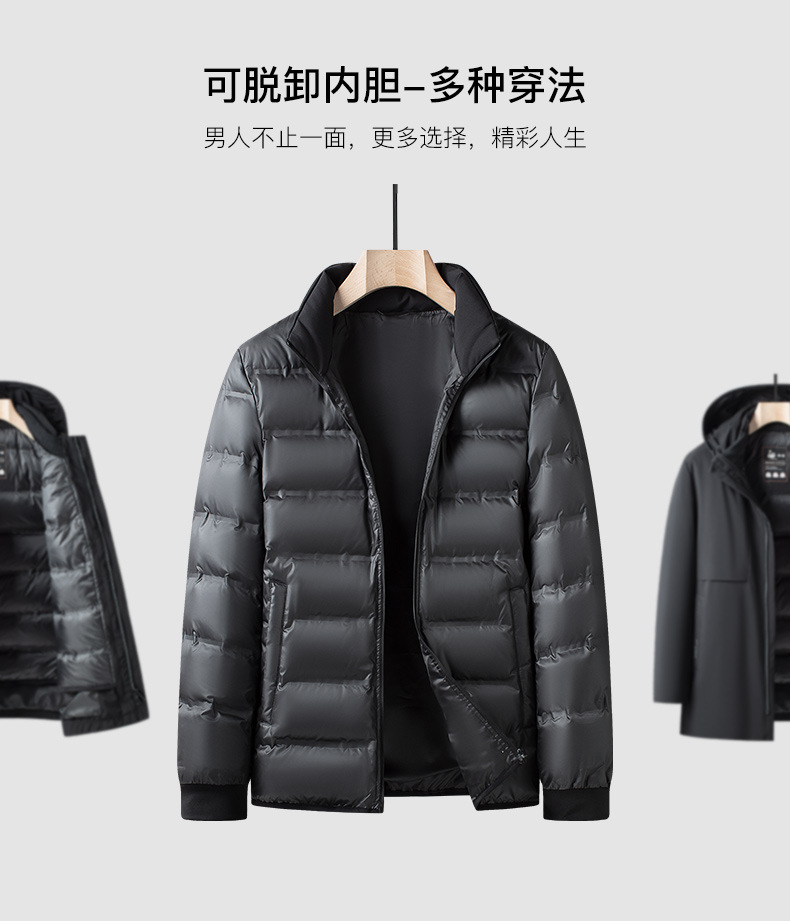 男士可脱卸内胆90鹅绒羽绒服冬季新款男装中年商务保暖爸爸装外套