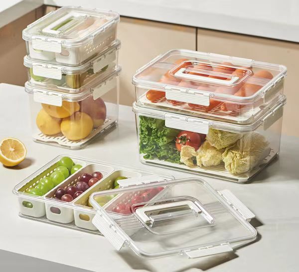 多规格透明PET材质单格多格分类冰箱收纳冰透奶油风冰箱收纳盒