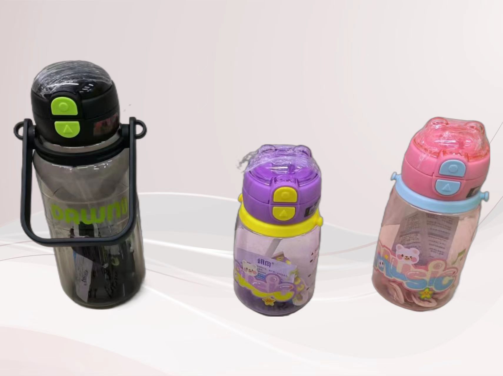 新款儿童吸管杯弹跳盖可斜跨提绳塑料杯幼儿园小学生喝水杯子