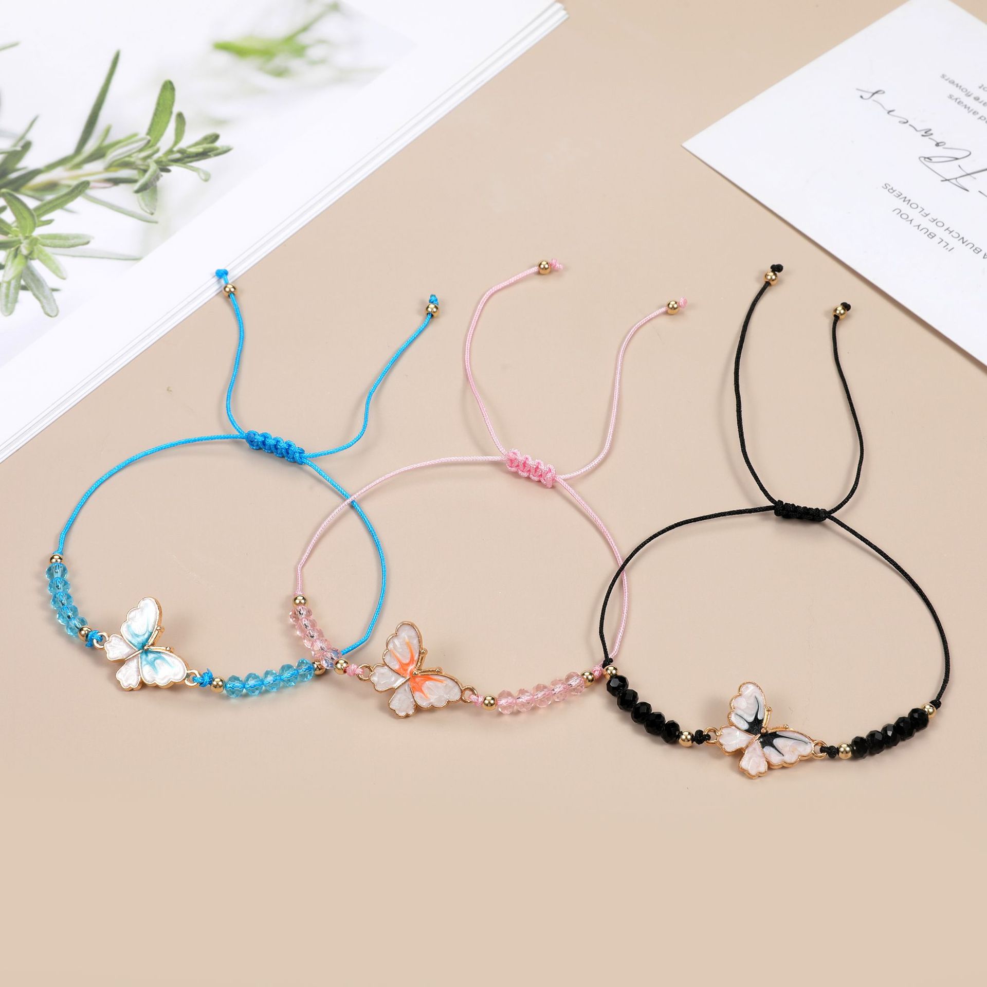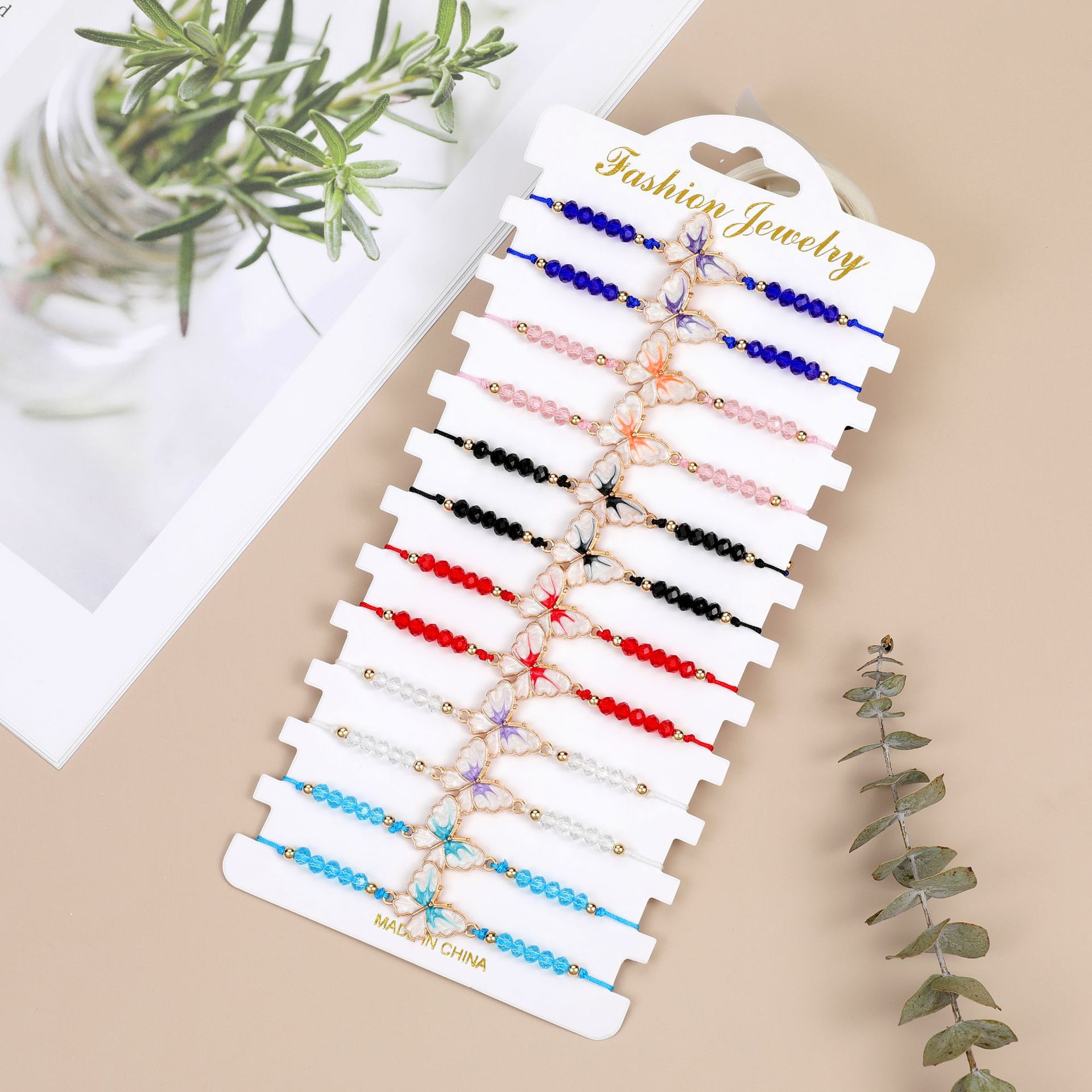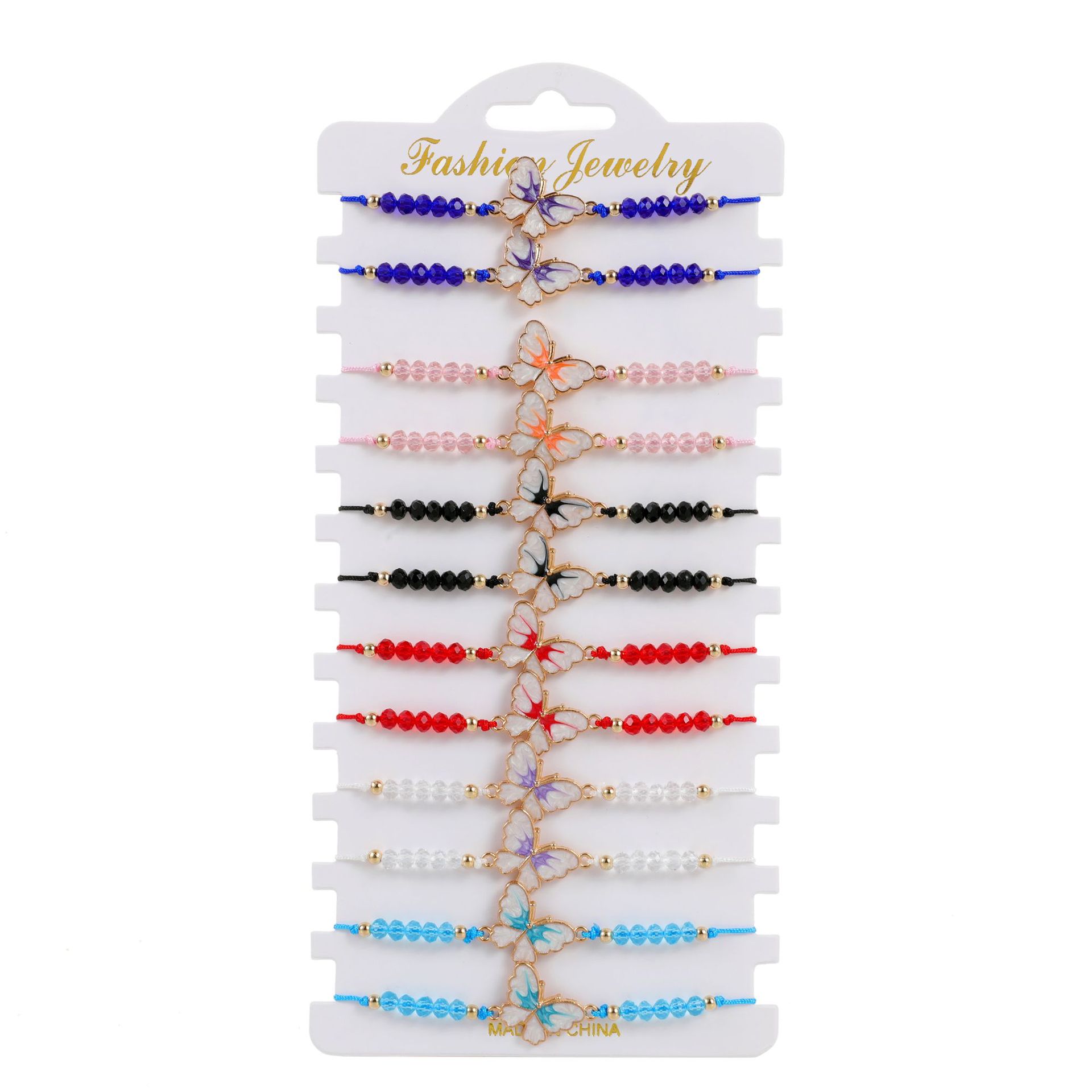 跨境新款彩色滴油蝴蝶手链套装 欧美女士时尚简约水晶珠编织手饰