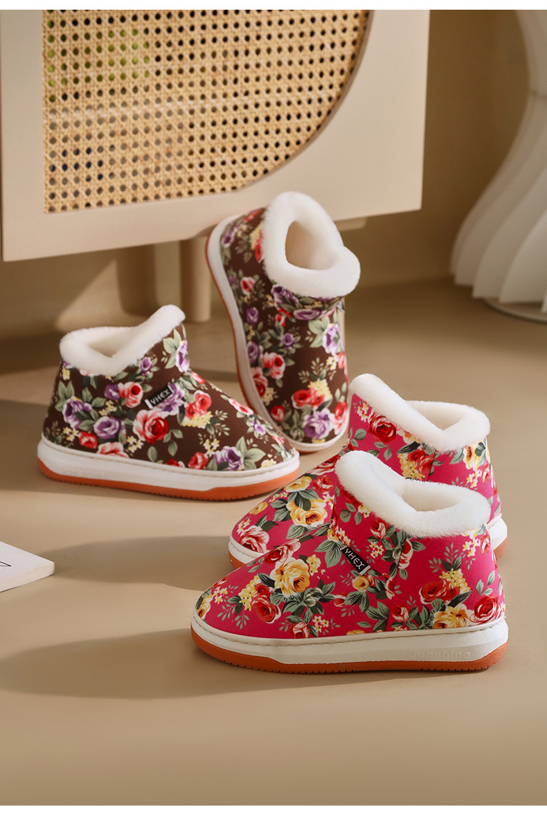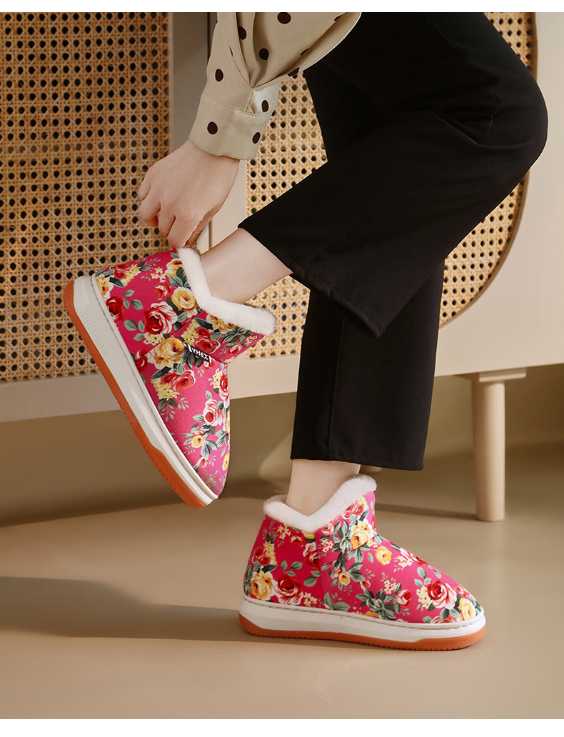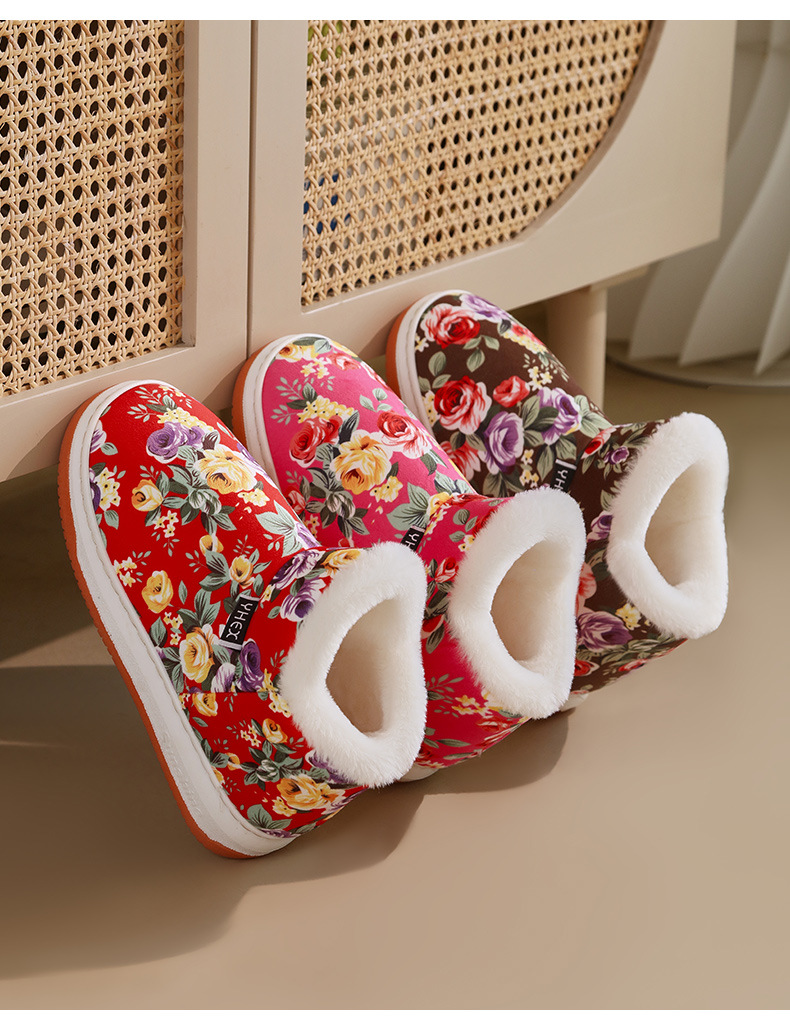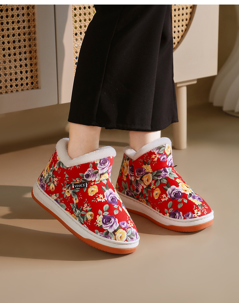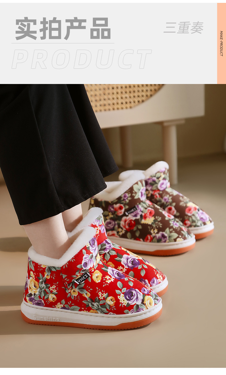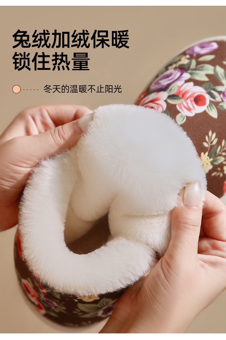 冬季保暖棉拖鞋高包跟女款厚底可外穿防滑妈妈鞋手工棉鞋中老年