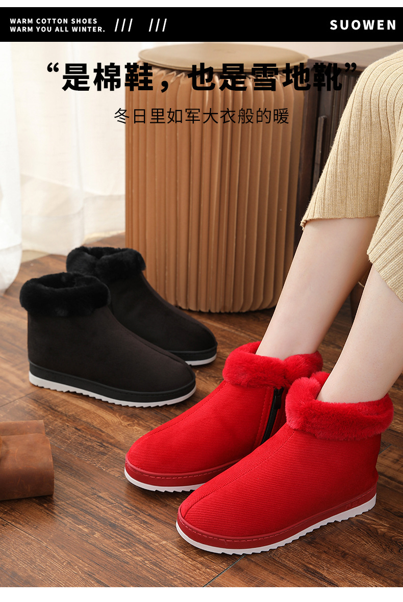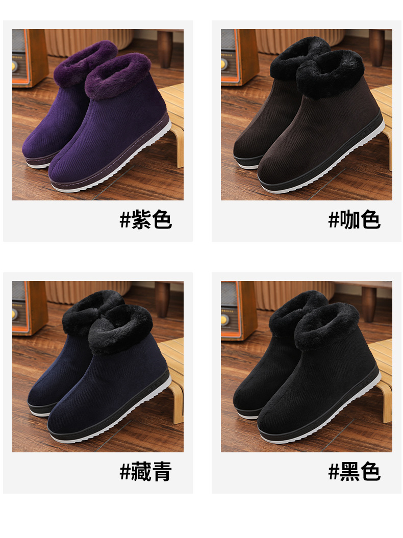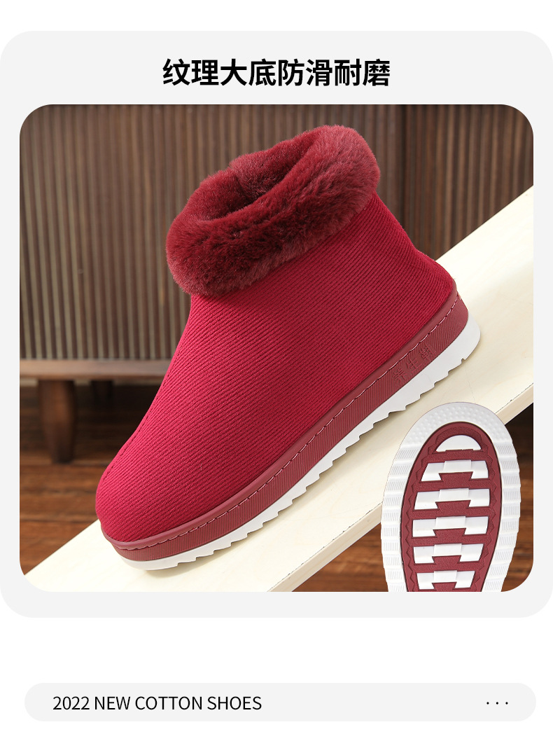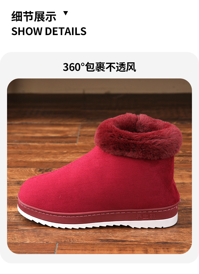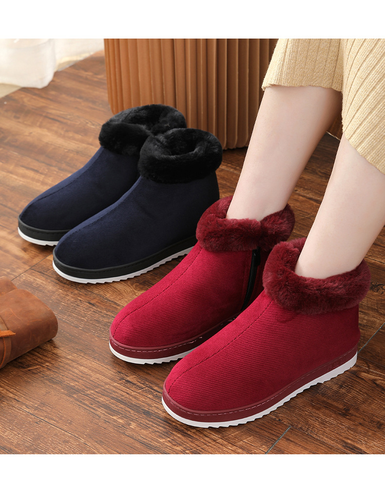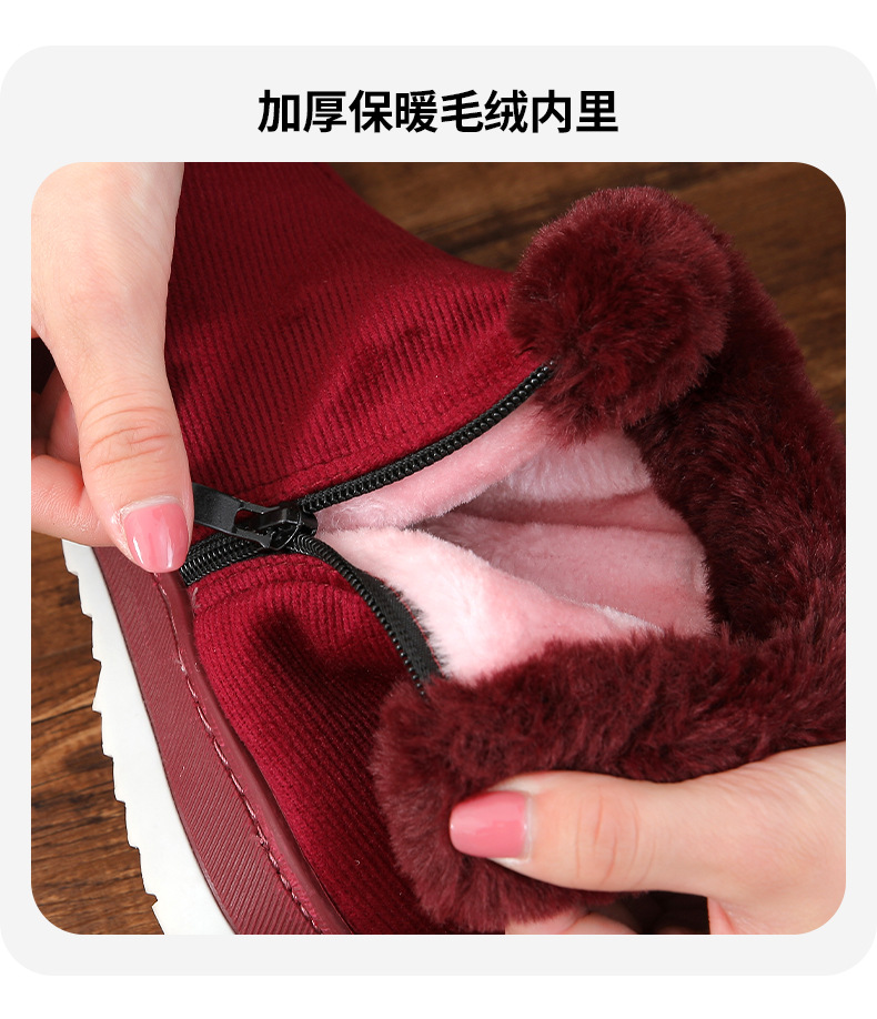 带拉链手工棉鞋中老年包跟棉鞋女室内外加绒厚底居家灯芯绒棉拖冬