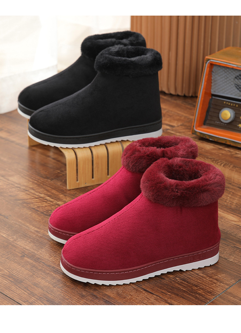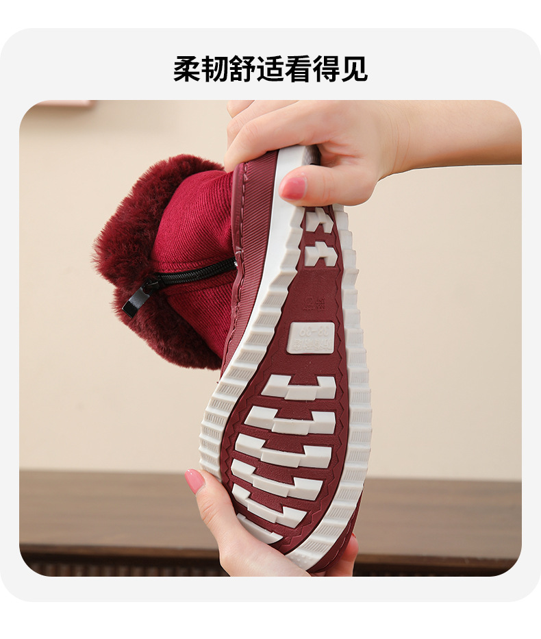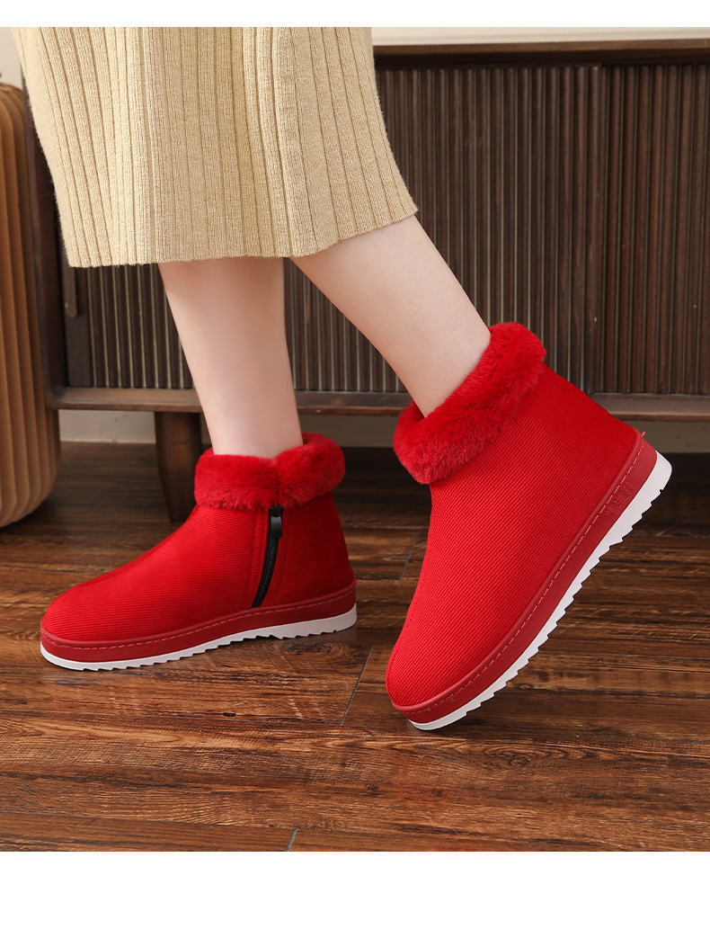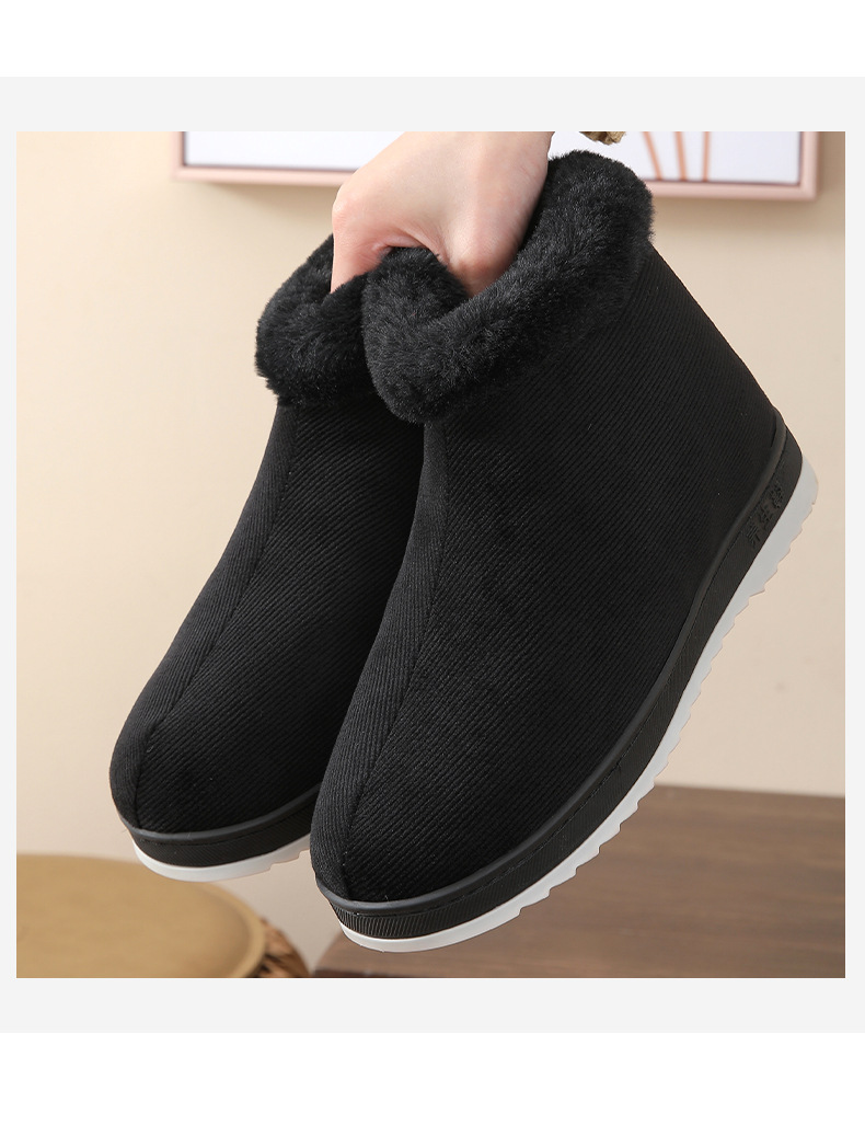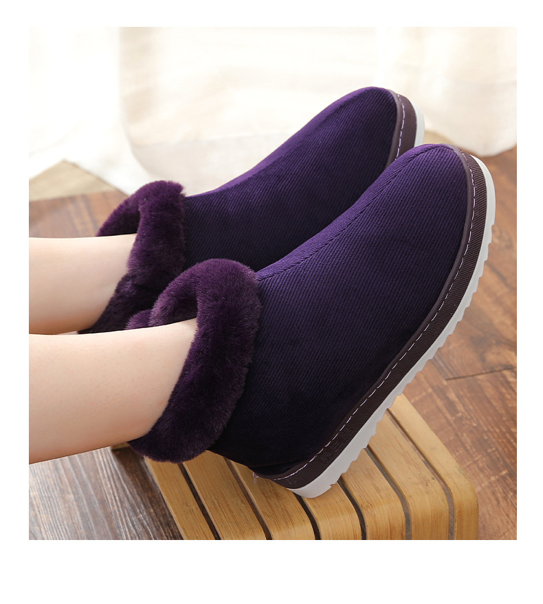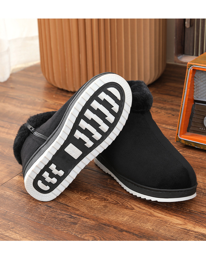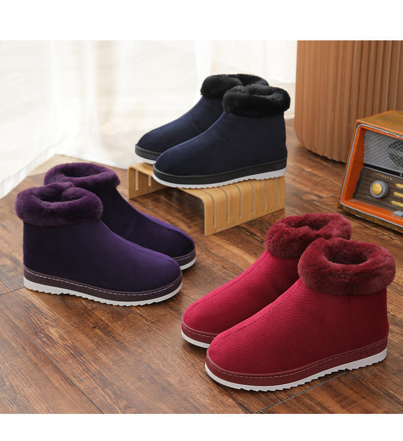 带拉链手工棉鞋中老年包跟棉鞋女室内外加绒厚底居家灯芯绒棉拖冬