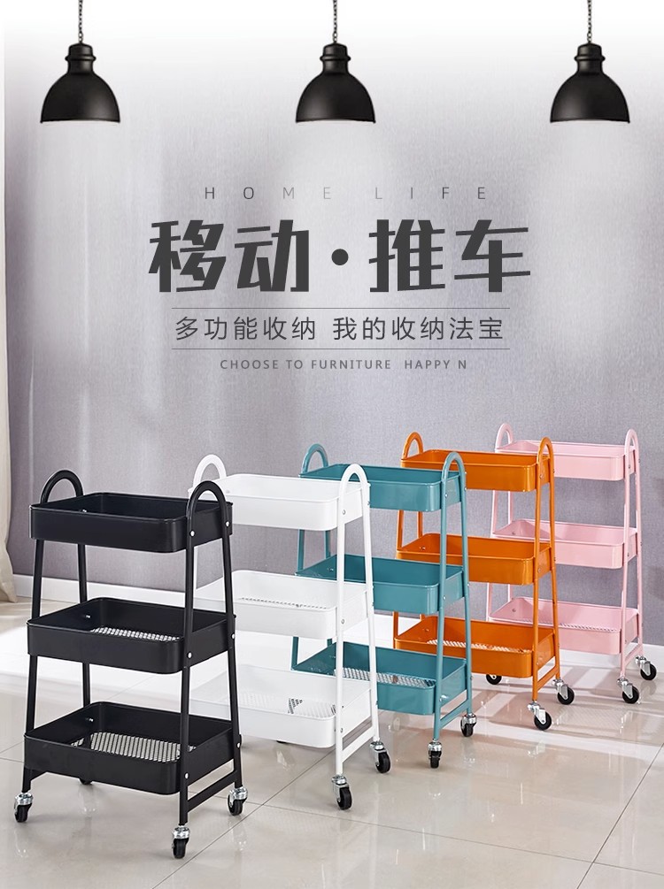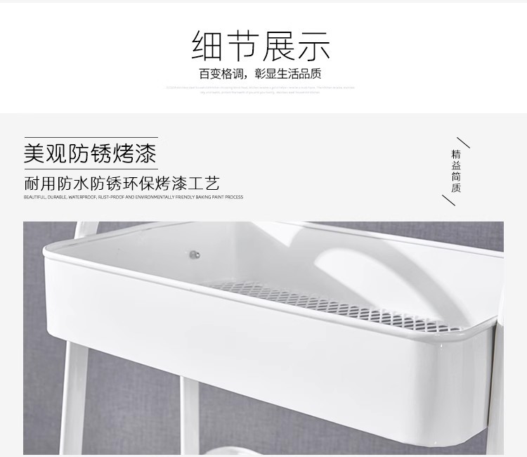 家用多层金属收纳厨房落地浴室洗漱台整理架小推车置物架碳钢