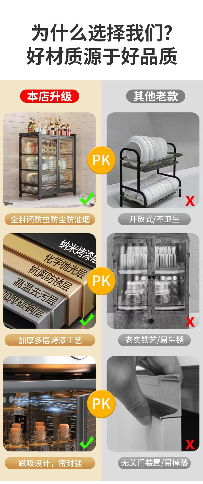 厨房碗柜置物架多功能家用防尘橱柜台面碟筷放碗收纳架碗架沥水架