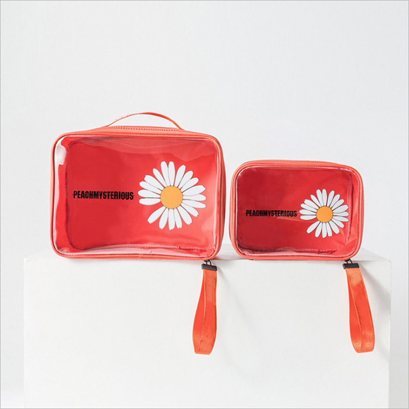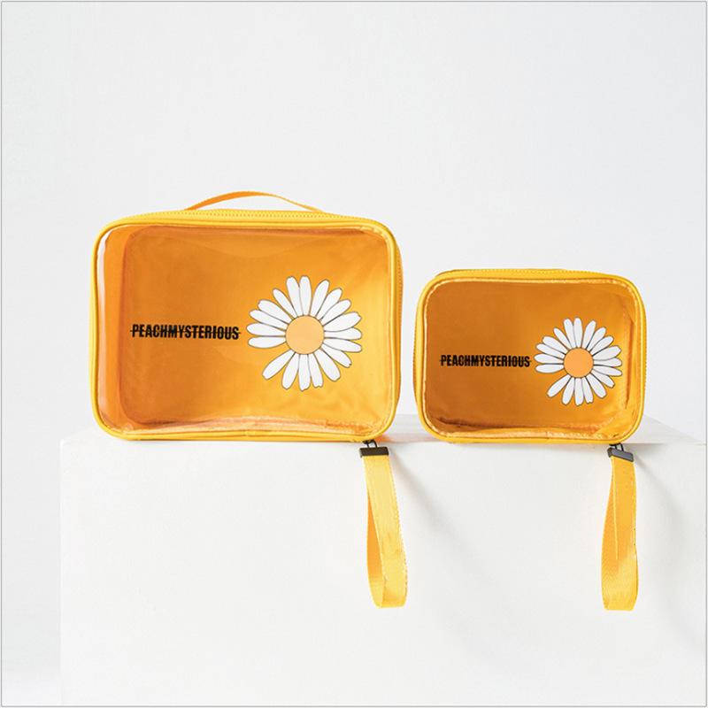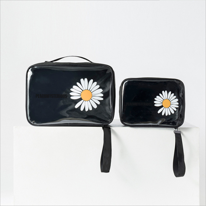 高颜值PVC小雏菊化妆包大号透明收纳袋高级大容量便携手提洗漱包