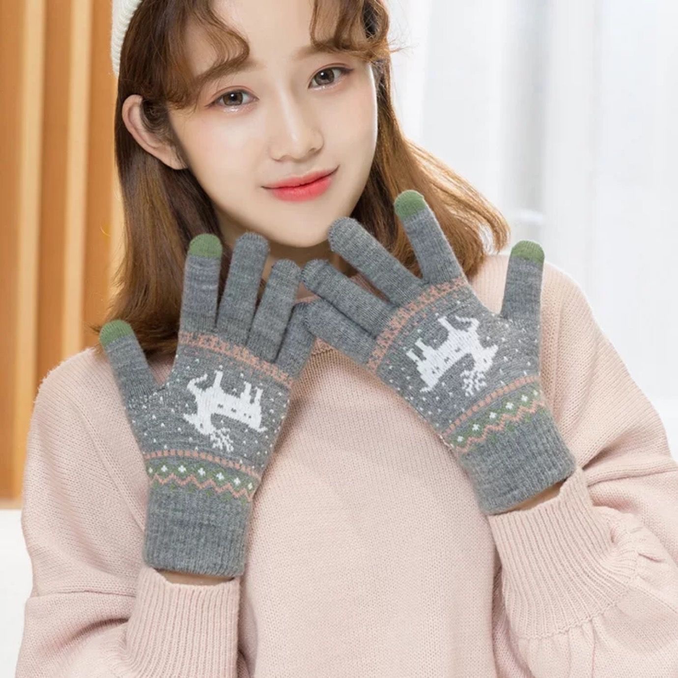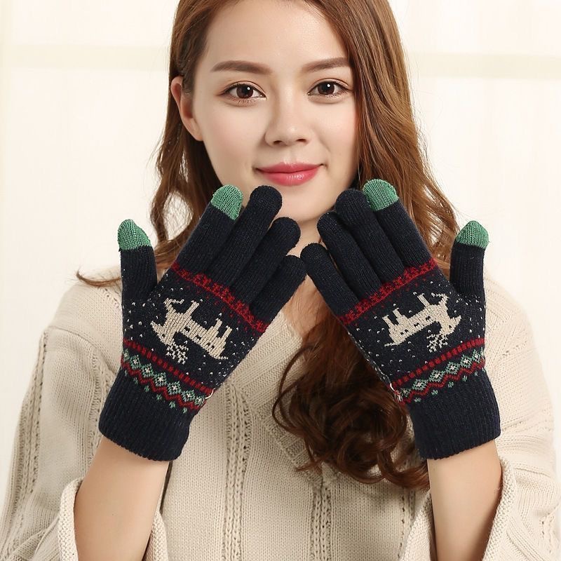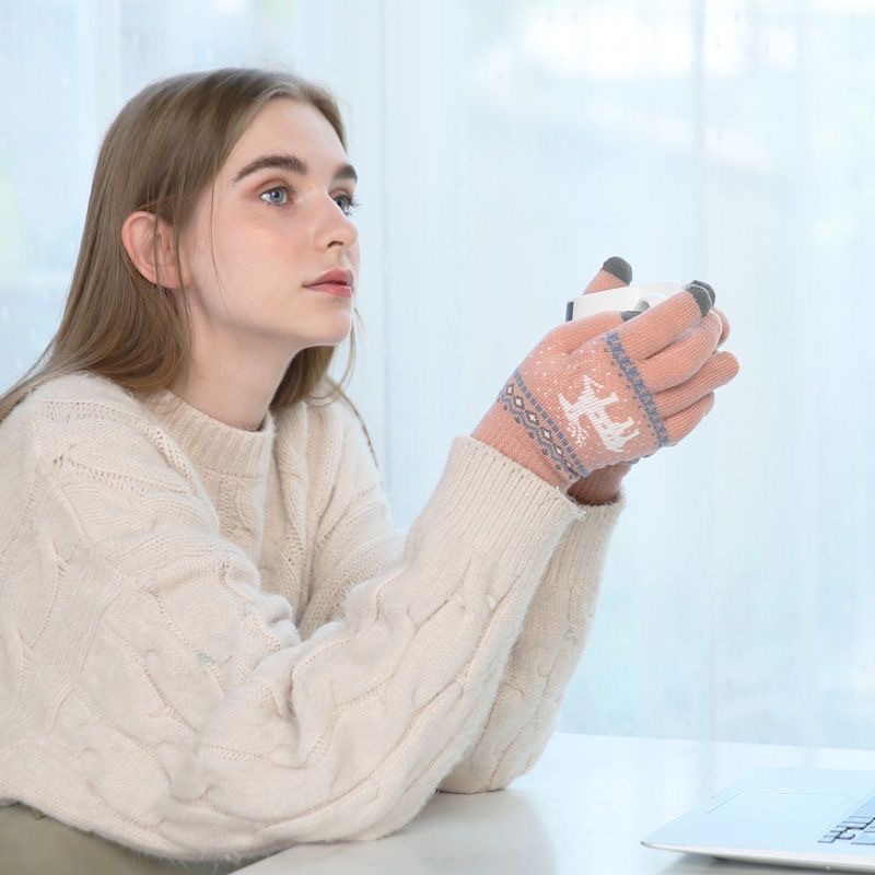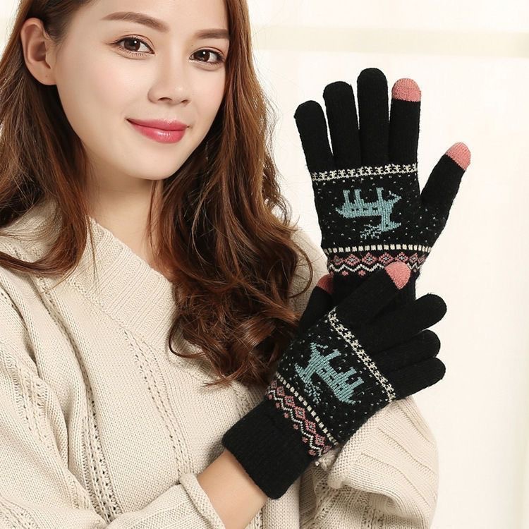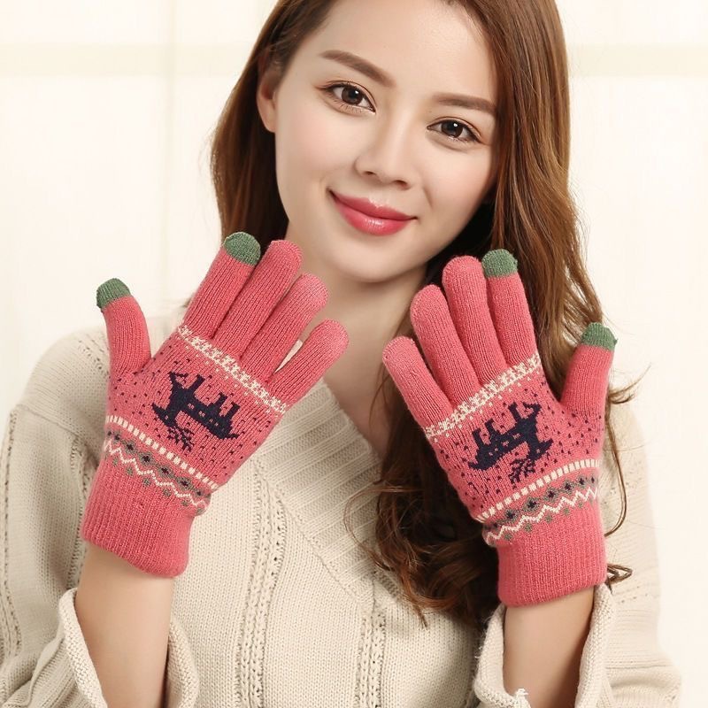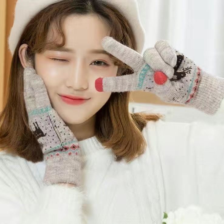 手套女冬天保暖秋季卡通学生触屏加厚绒毛线针织棉五指男士骑行车