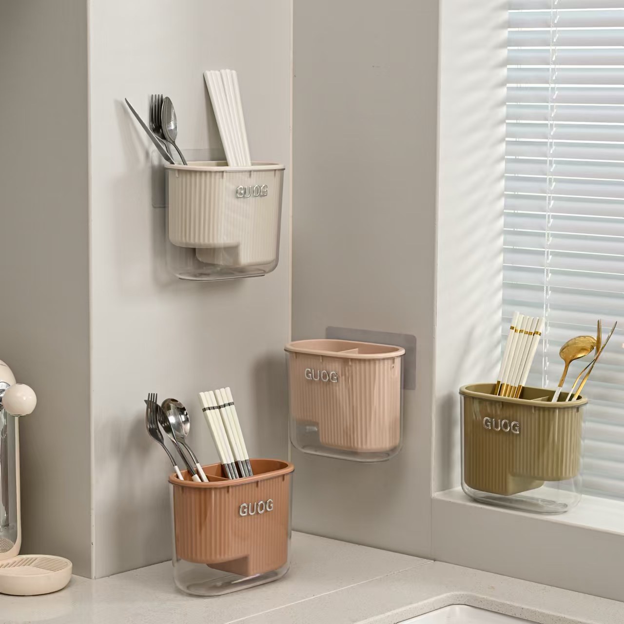 奶油风置物架筷子笼筷子篓家用多功能放勺子厨房沥水筷子筒收纳盒