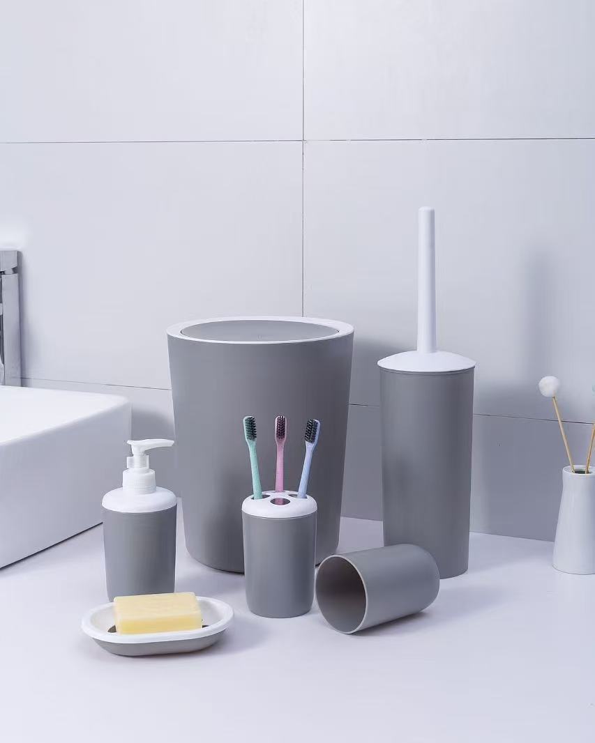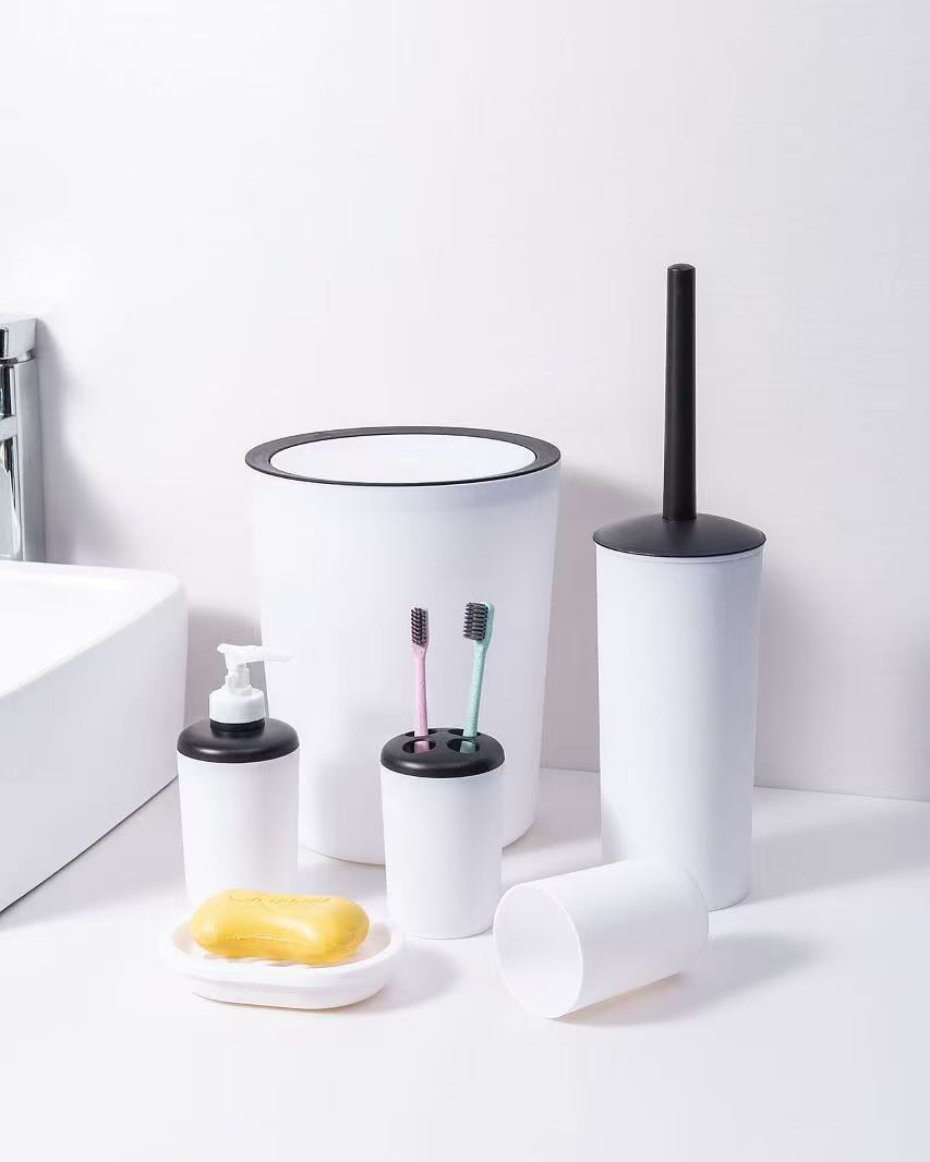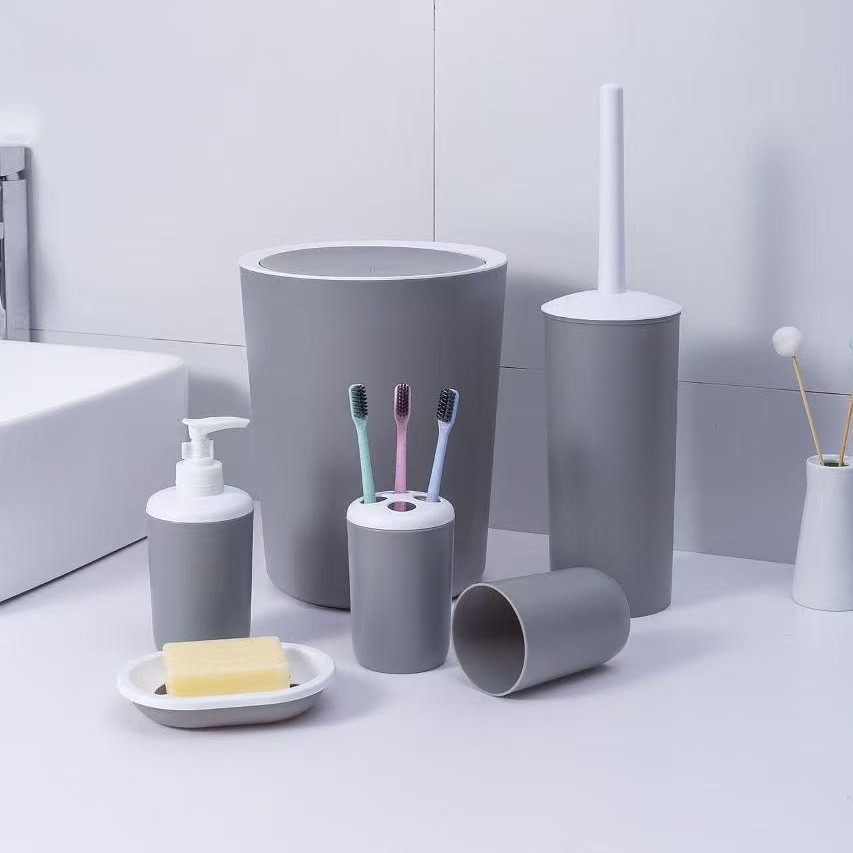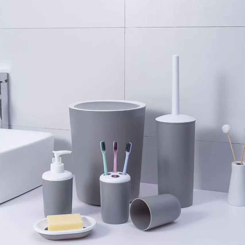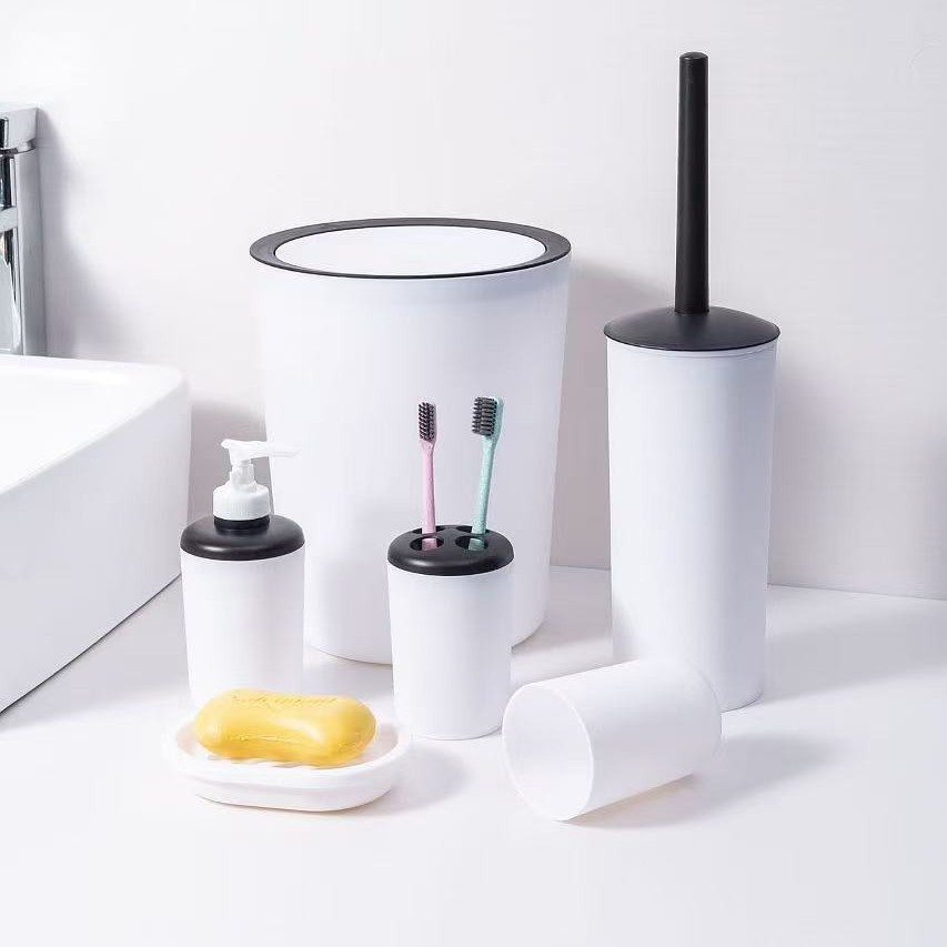 酒店家用塑料浴室竹盖卫浴洗漱套装收纳洗漱用品六件套
