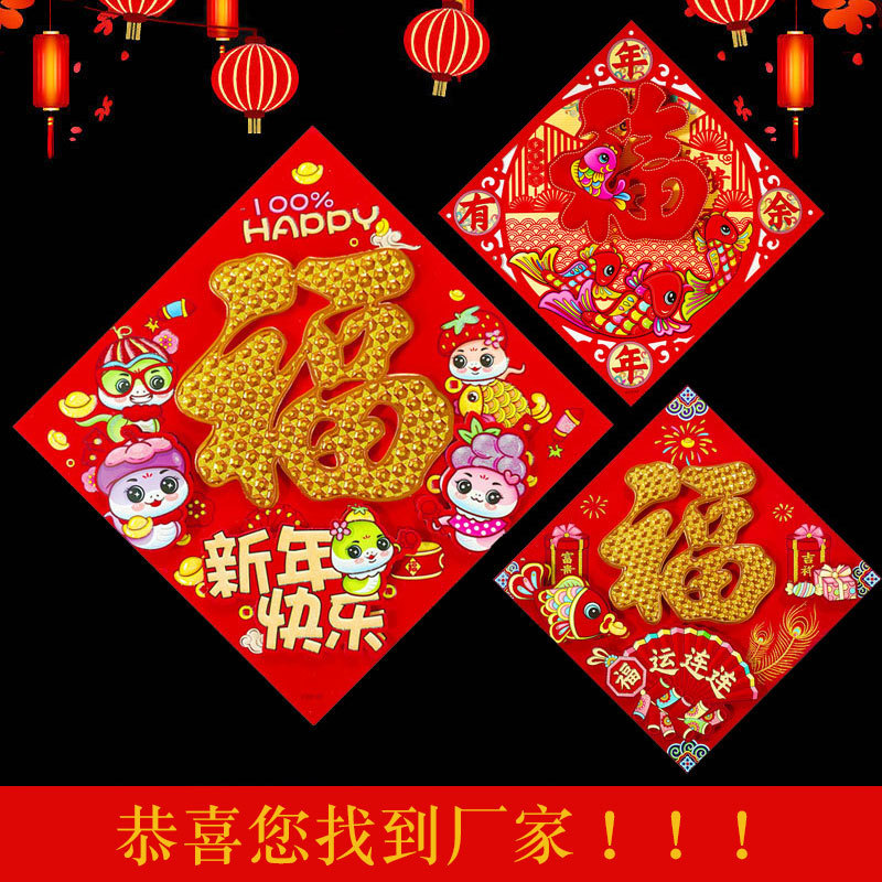 春节用品植绒金粉立体福字门贴春节新年装饰高档生肖卡通福字批发