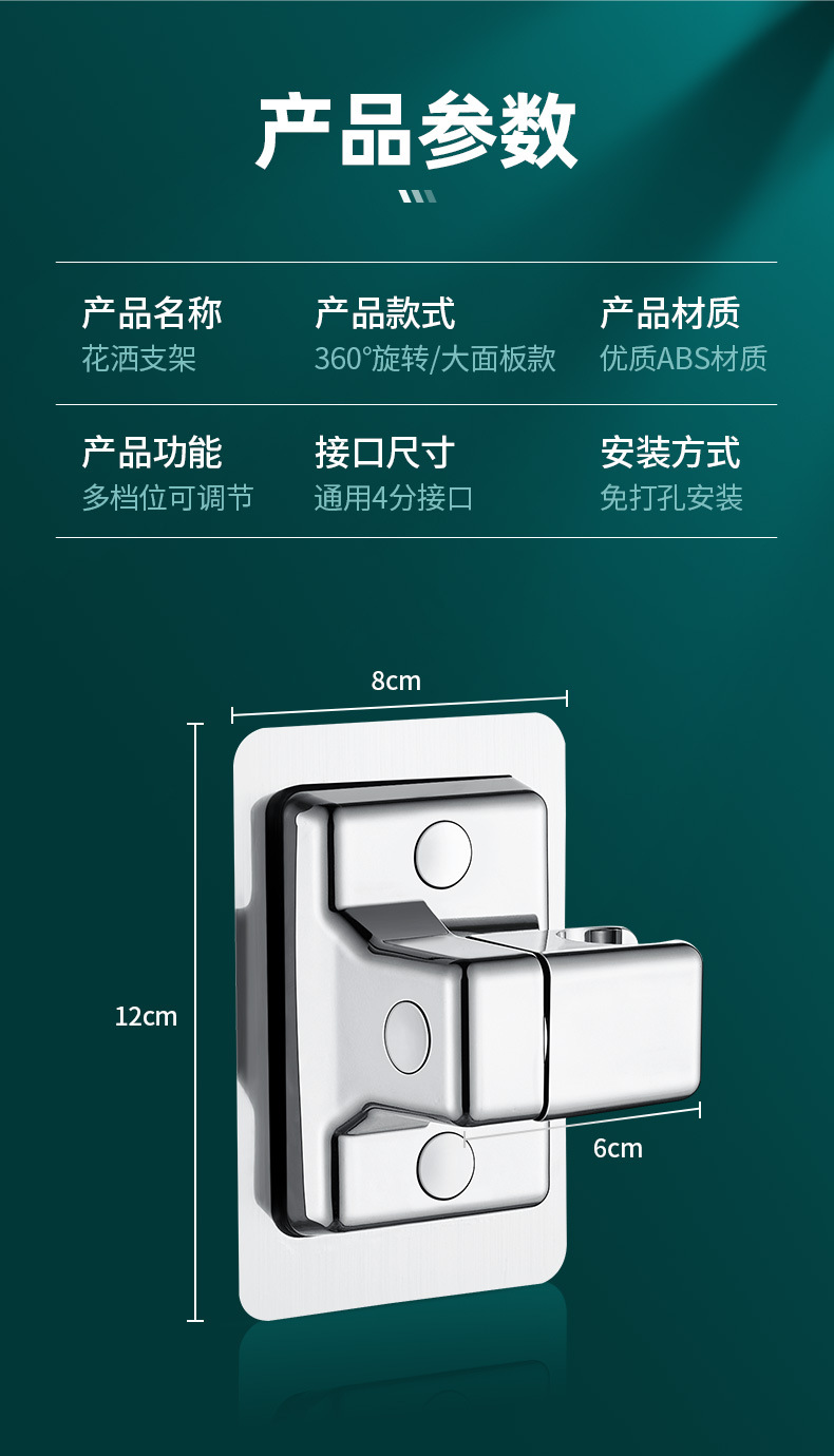 免打孔花洒支架淋浴喷头固定器浴室淋雨挂座可调节花晒墙底座支架