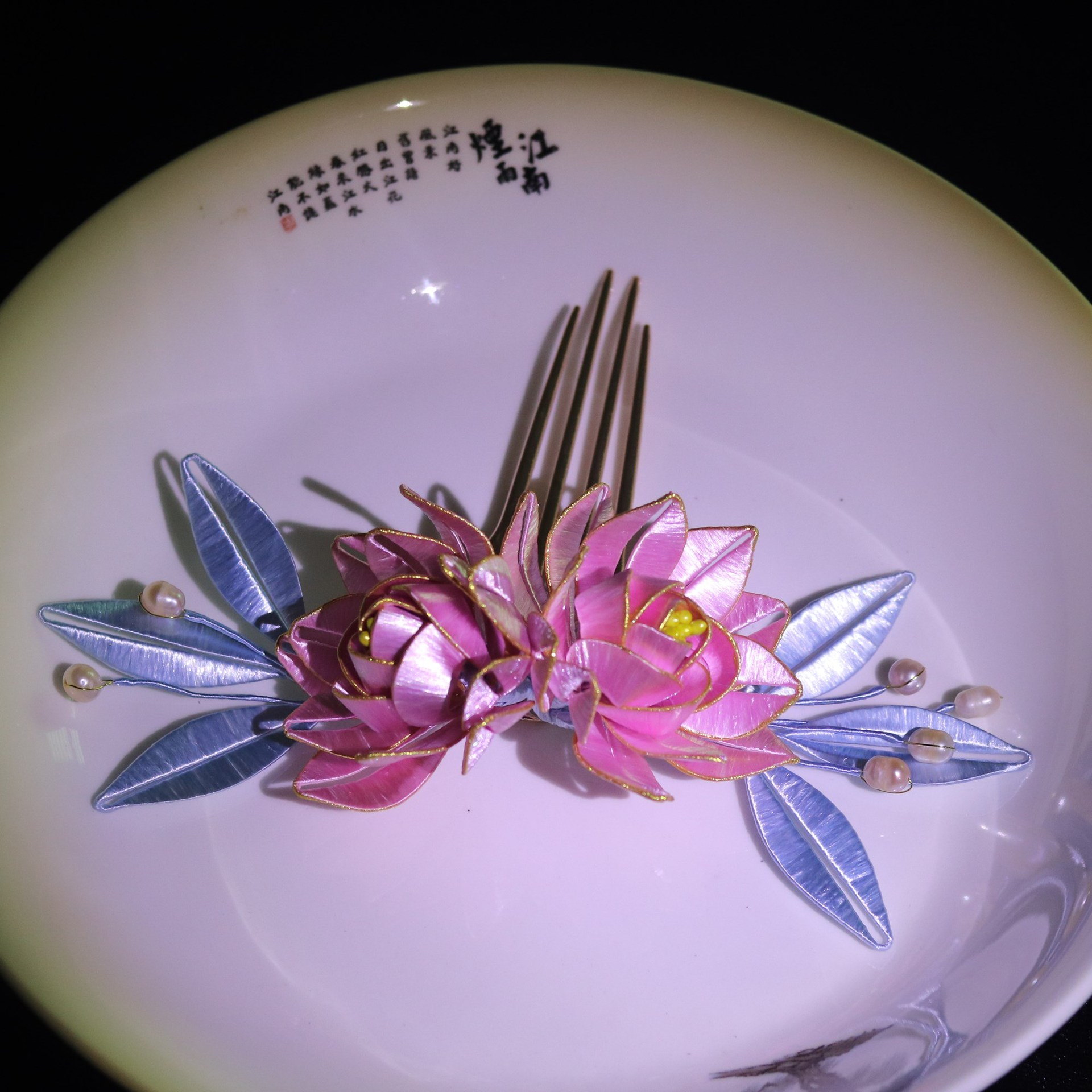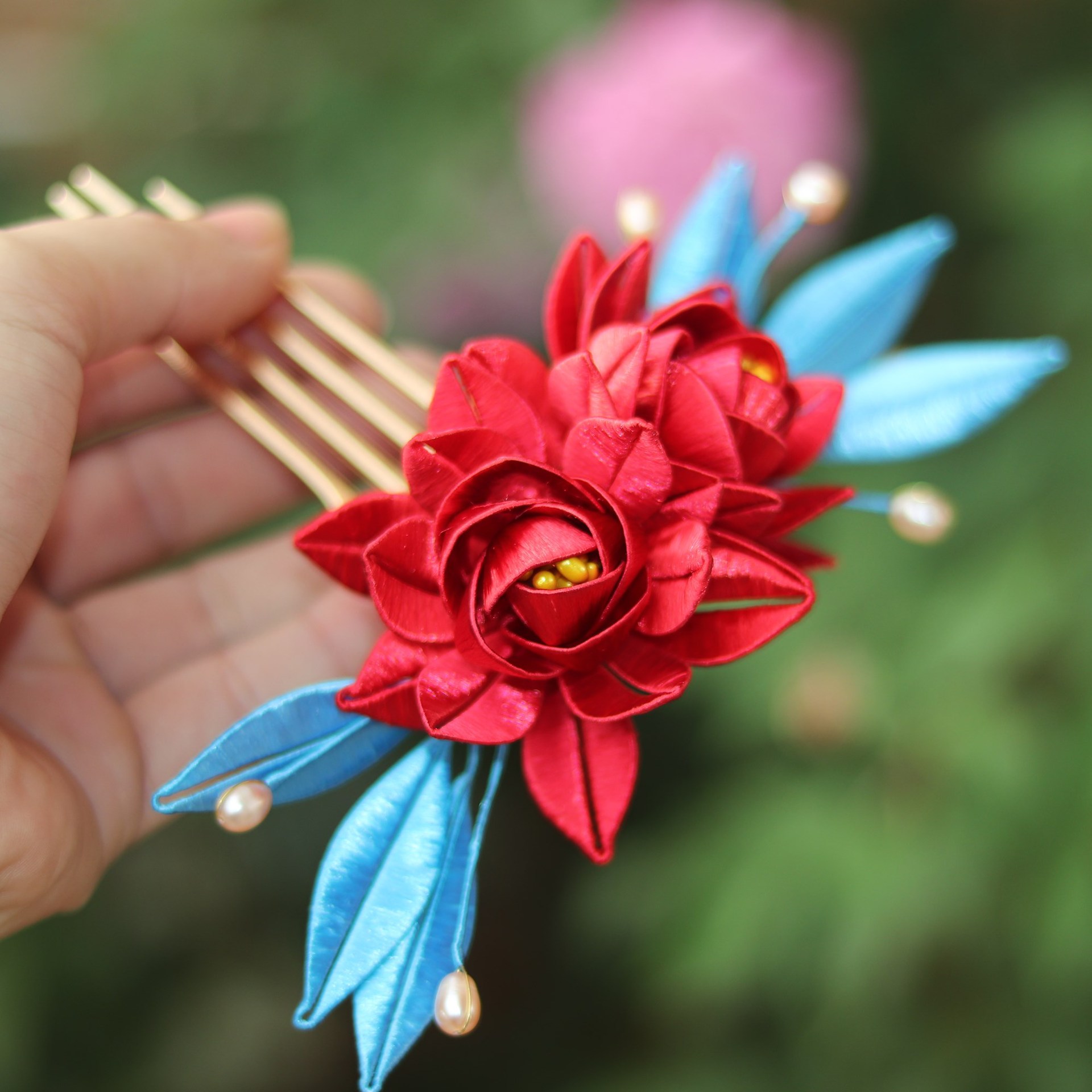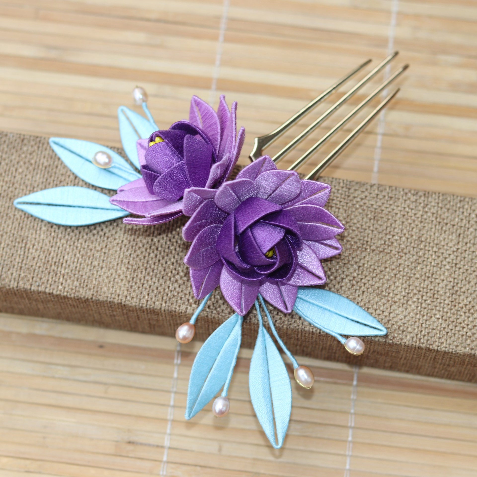 栀子花发梳缠花描金古风汉服配饰发簪簪子复古珍珠发饰钗夹小清新