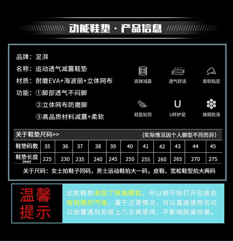 运动鞋垫软底不累脚舒适透气军训鞋垫软弹保暖鞋垫吸汗防除臭鞋垫