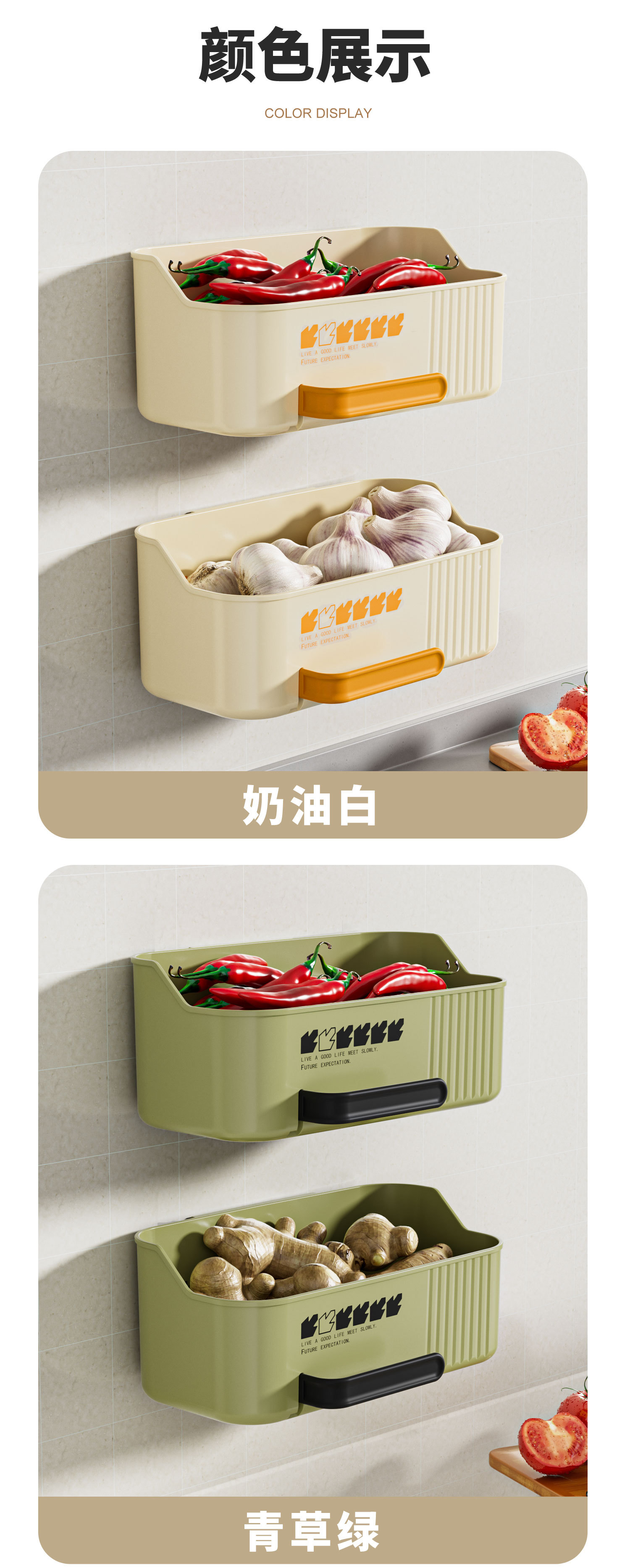 厨房吸盘置物架壁挂生姜免打孔大蒜收纳神器挂篮备菜葱姜蒜收纳盒