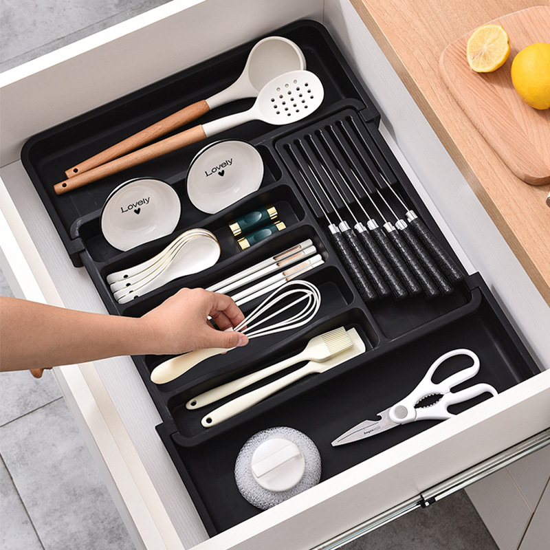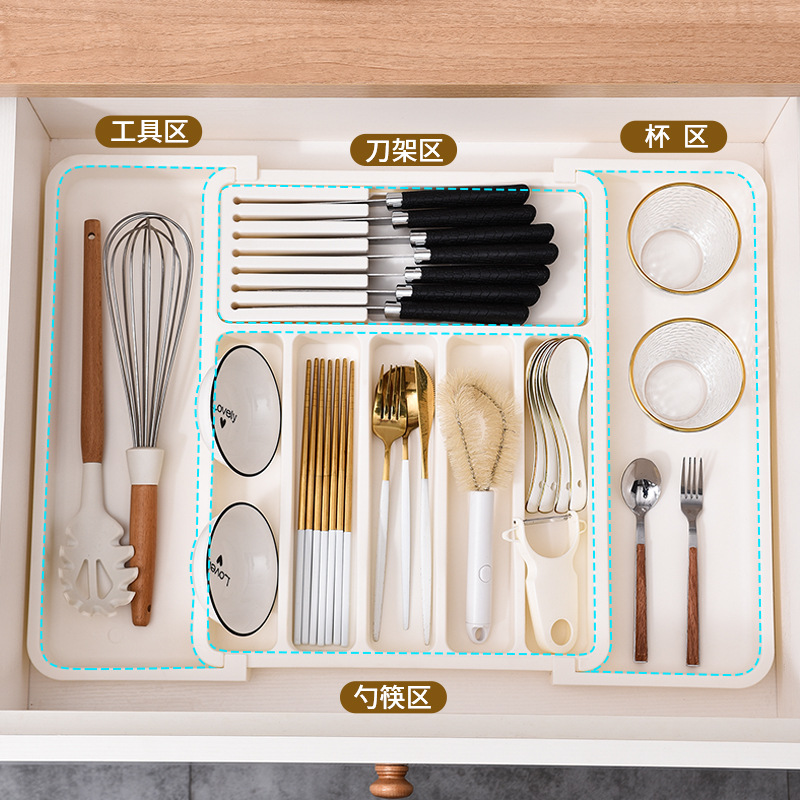可收缩厨房刀叉勺可叠加带分格餐具收纳盒刀具分隔抽屉整理盒餐具