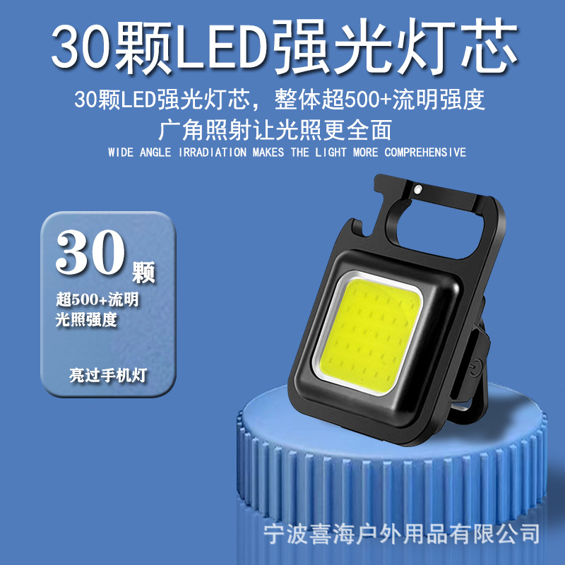 跨境迷你钥匙扣灯多功能强光小手电强磁工作灯开瓶器露营灯自驾游