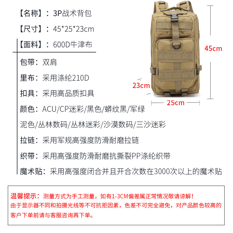 运动户外迷彩背包军迷登山包城市攻击包25L小号3P战术双肩背包