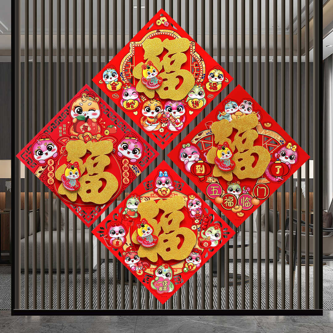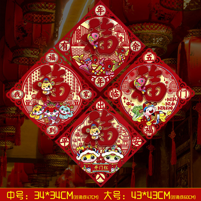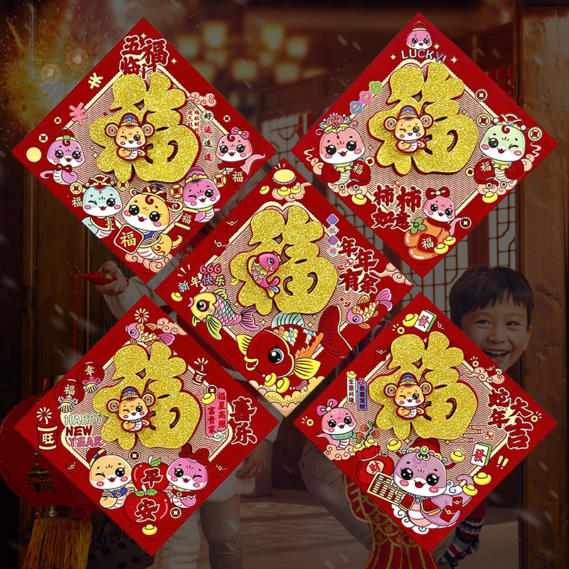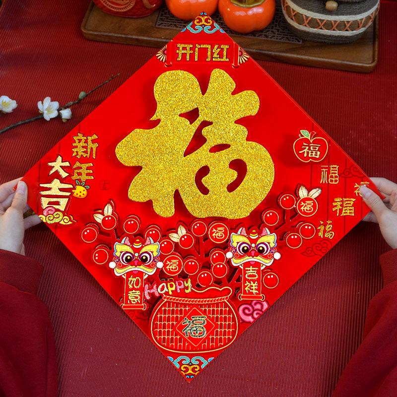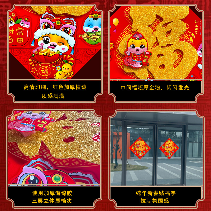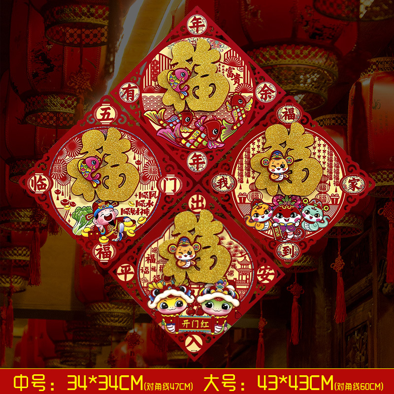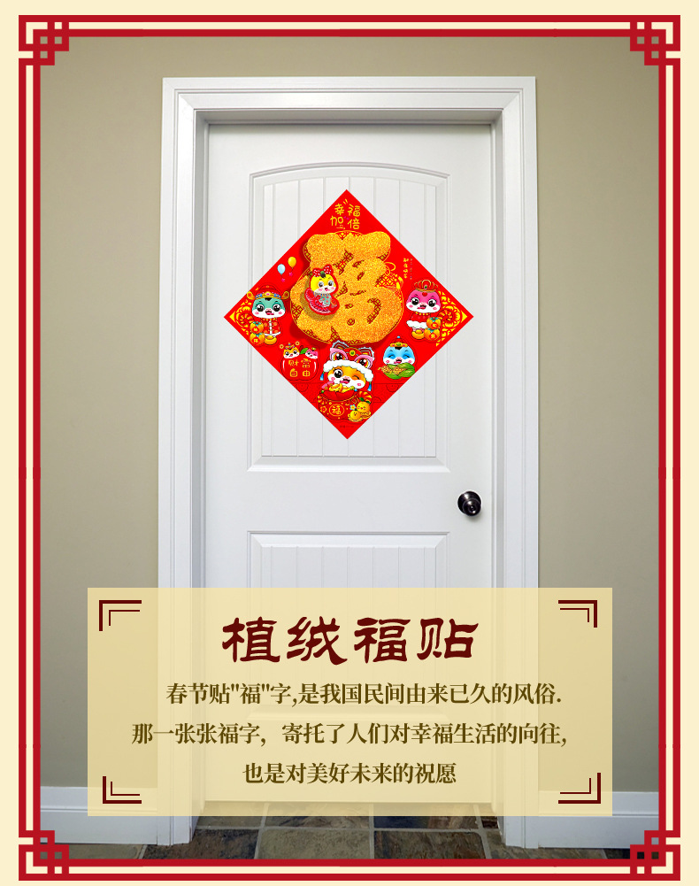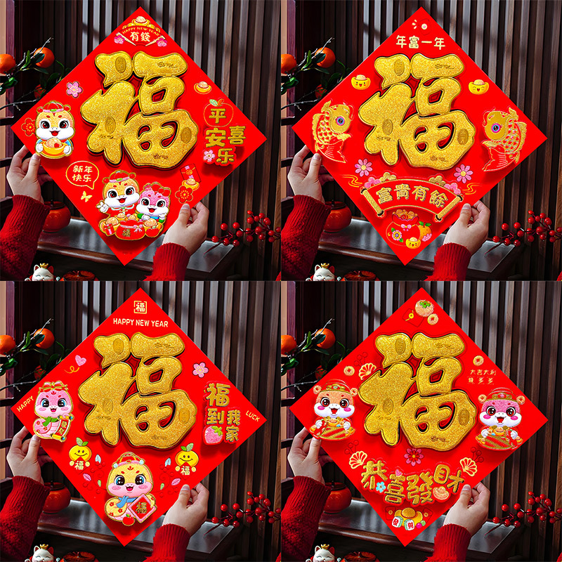 春节用品立体福字三层卡通生肖植绒大门装饰春节过年布置福字门贴