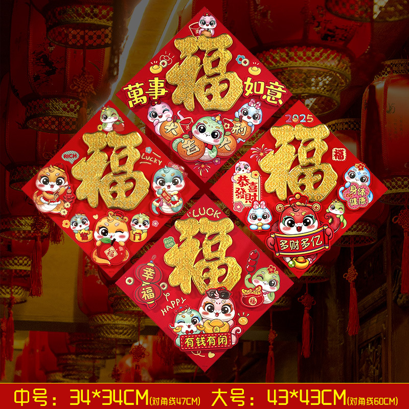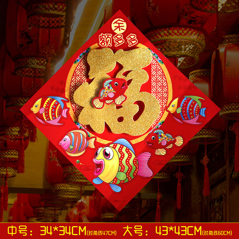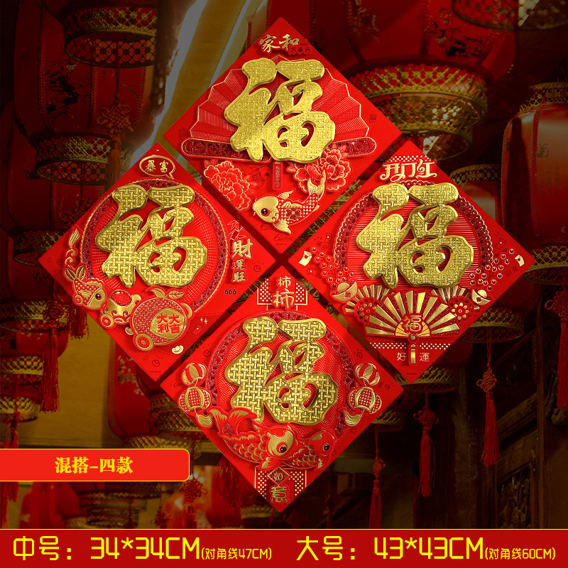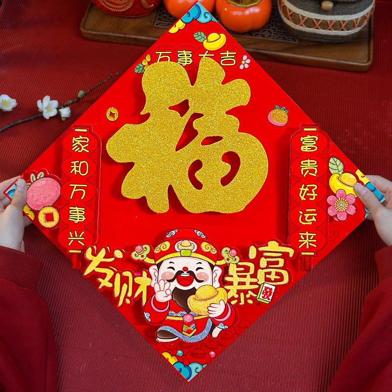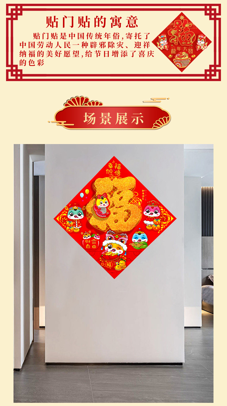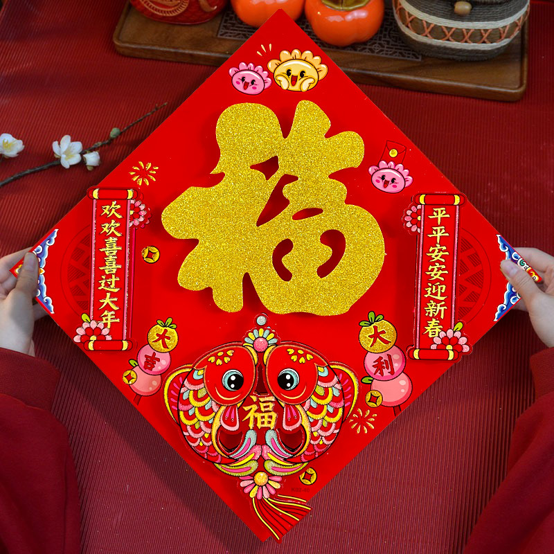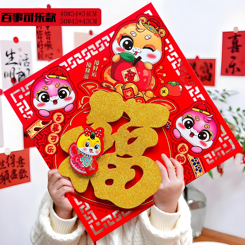 春节用品立体福字三层卡通生肖植绒大门装饰春节过年布置福字门贴