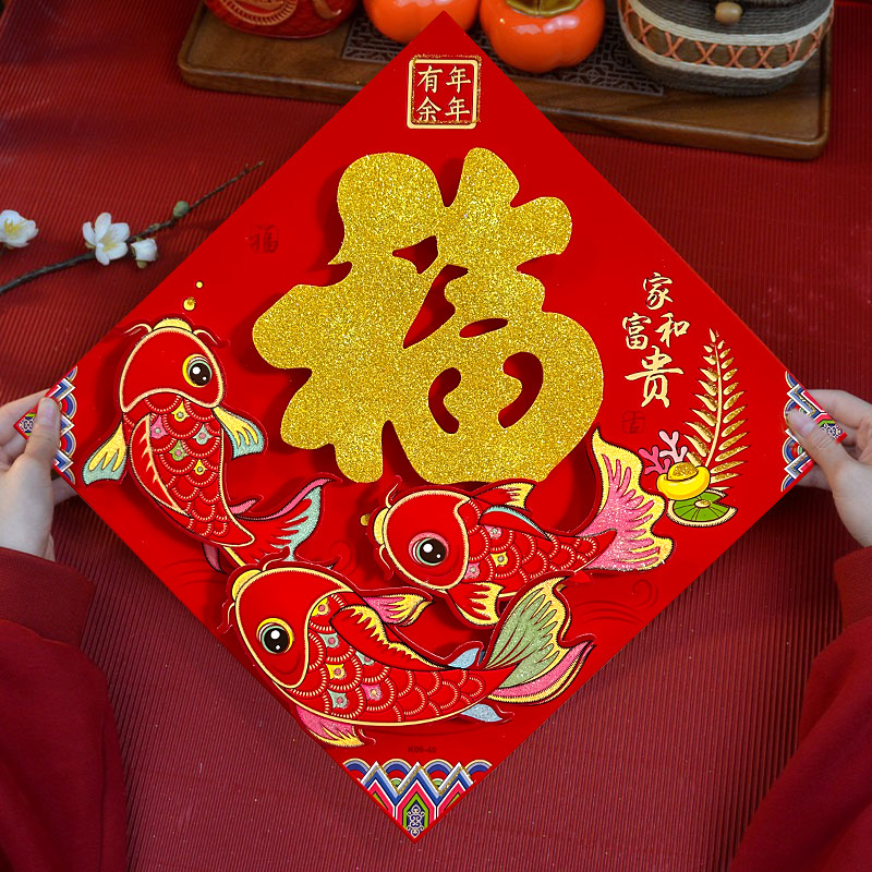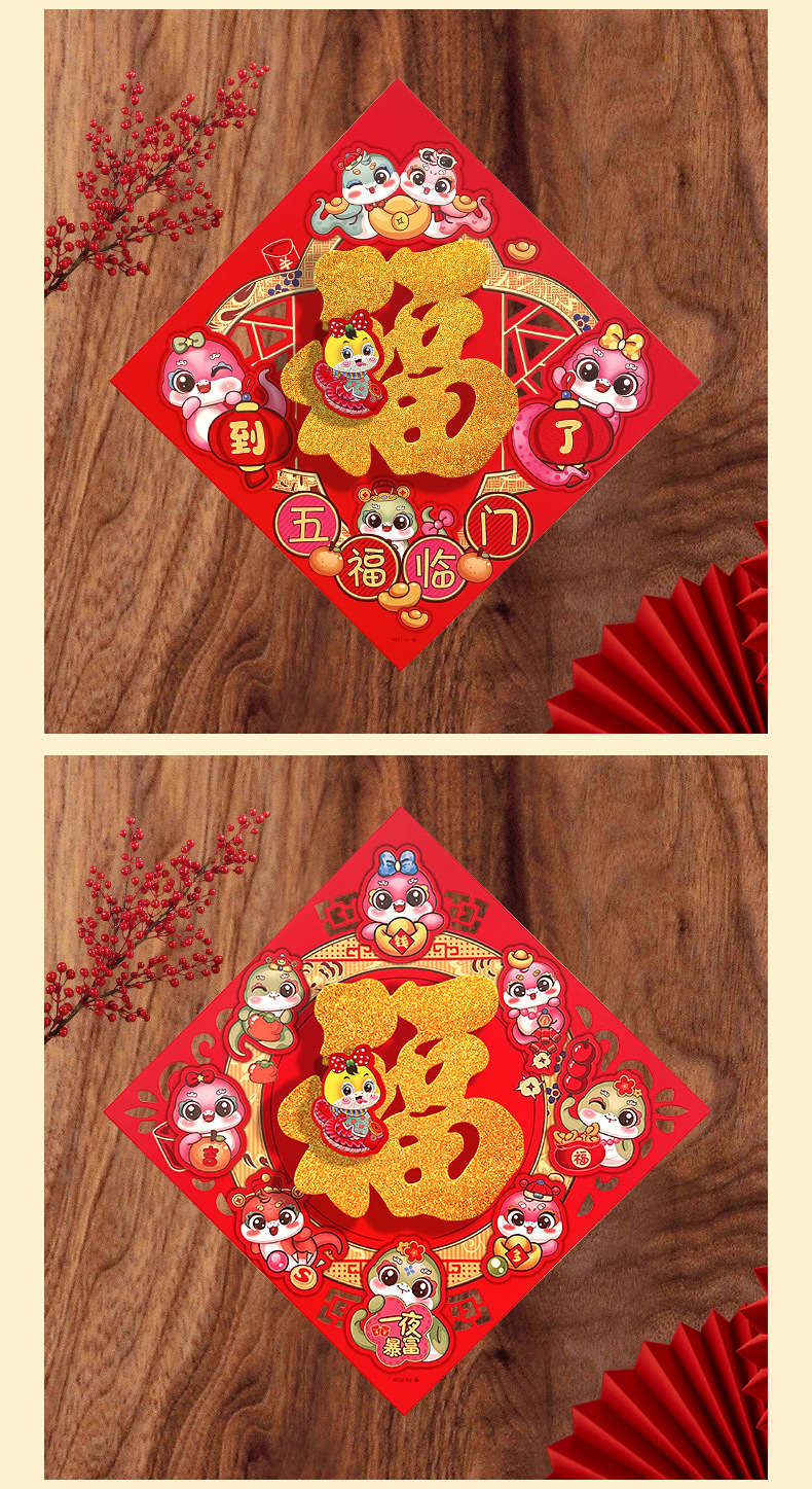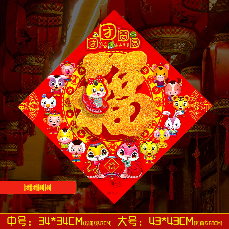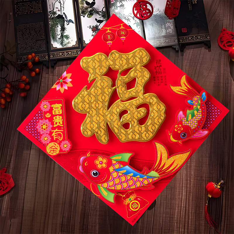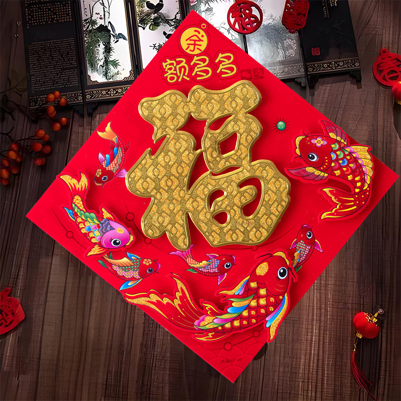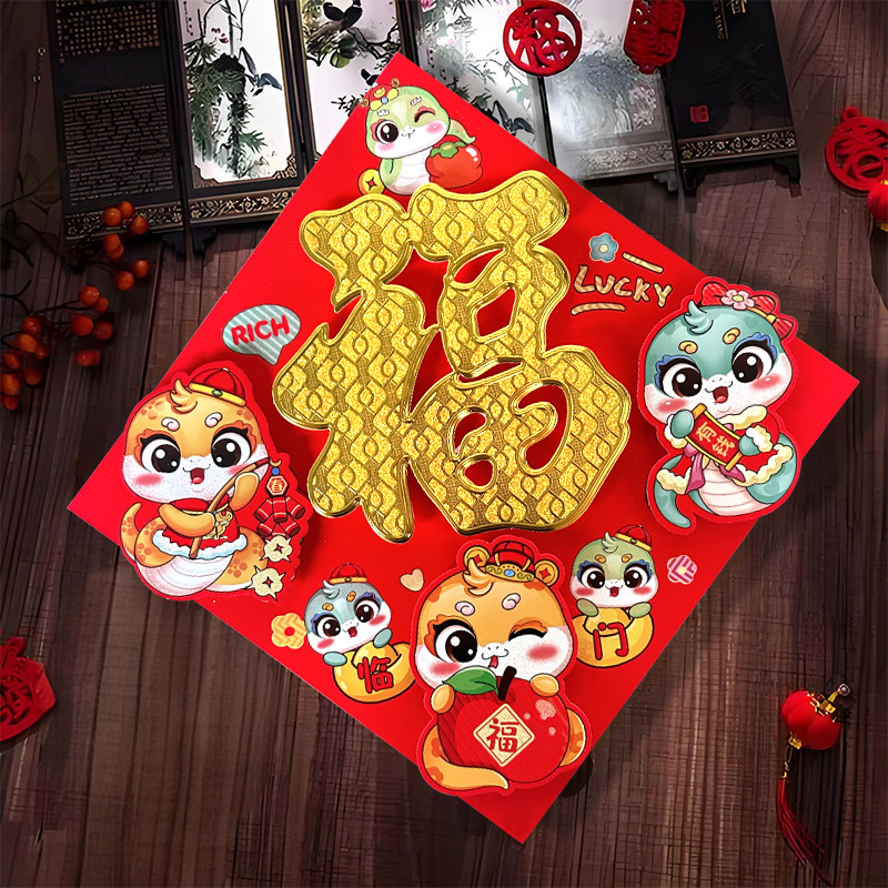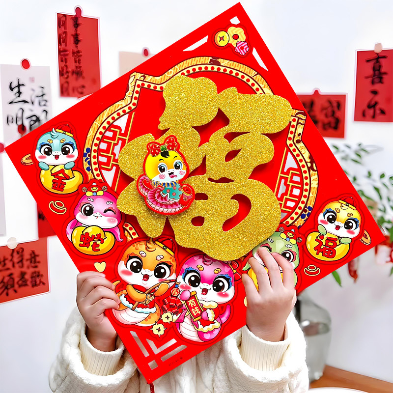 春节用品立体福字三层卡通生肖植绒大门装饰春节过年布置福字门贴