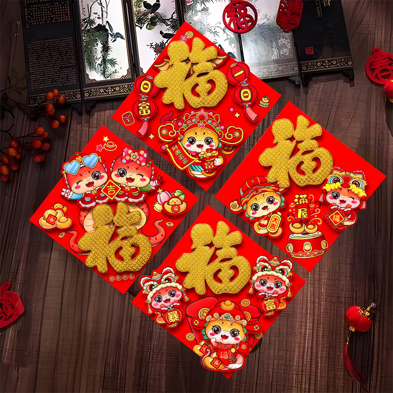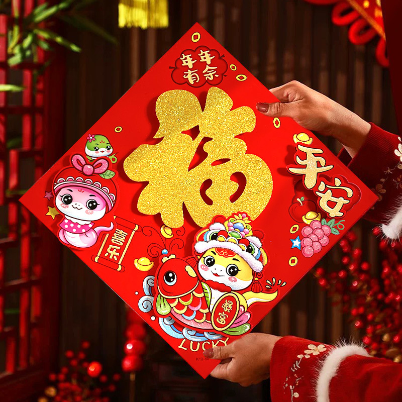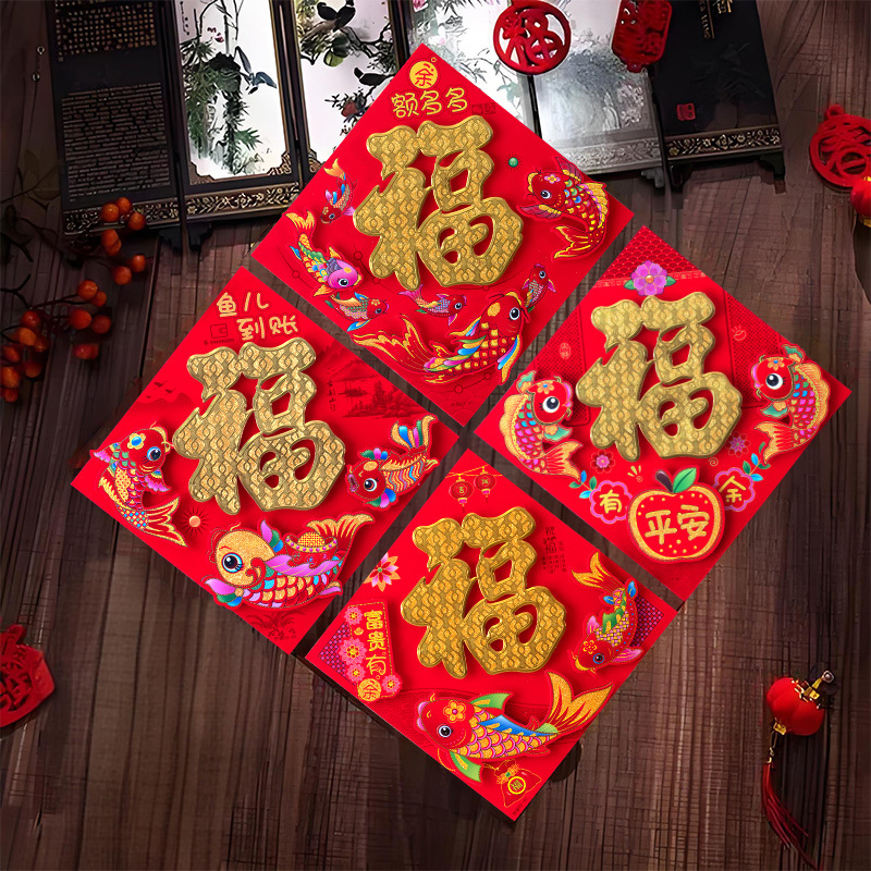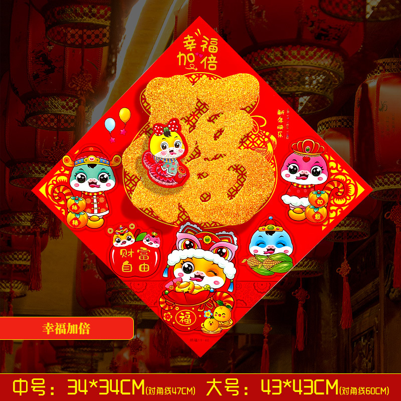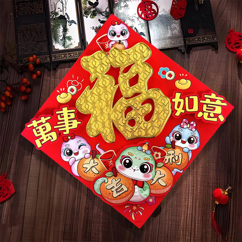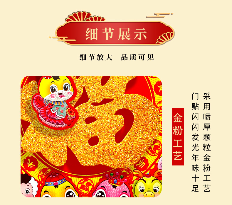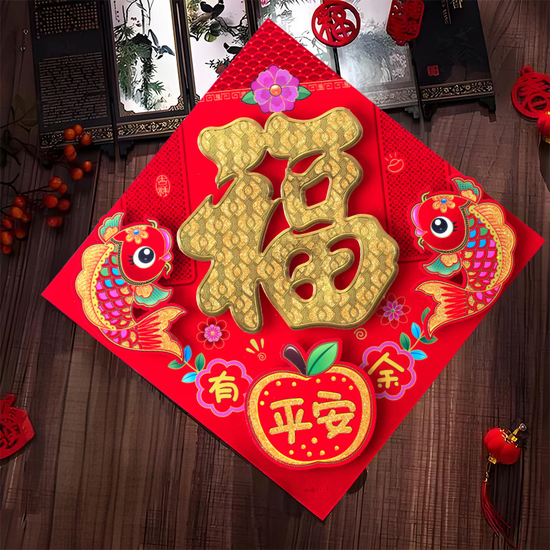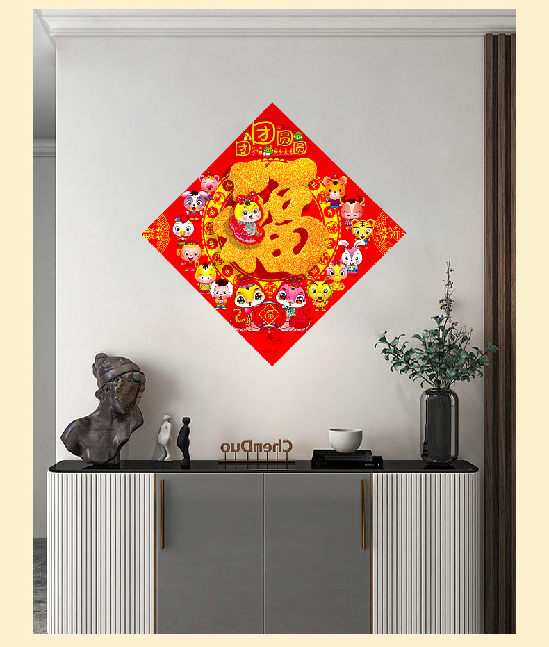 春节用品立体福字三层卡通生肖植绒大门装饰春节过年布置福字门贴